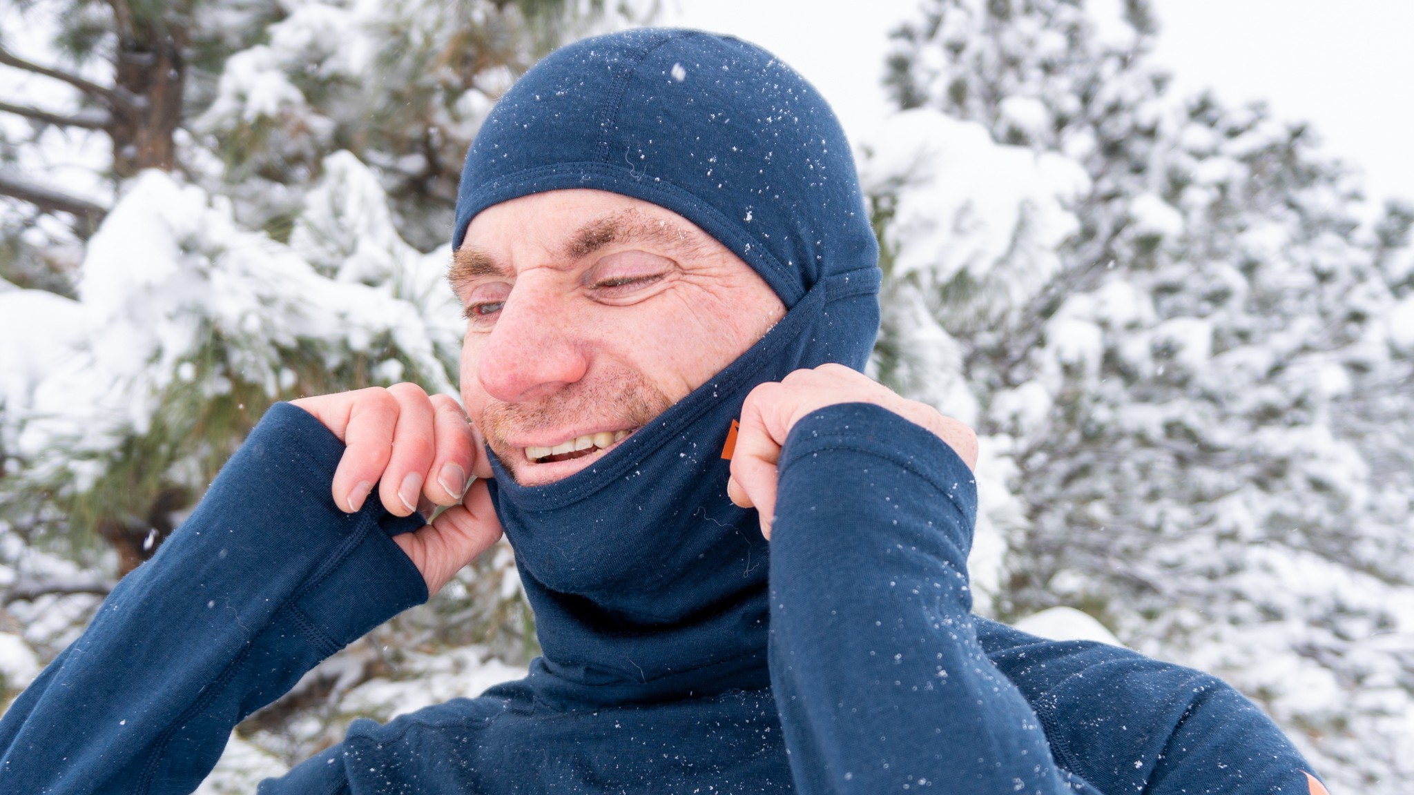 The Aspect Midweight Merino's balaclava hood works well alone, or with an outer layer. Credit: Justin Simoni