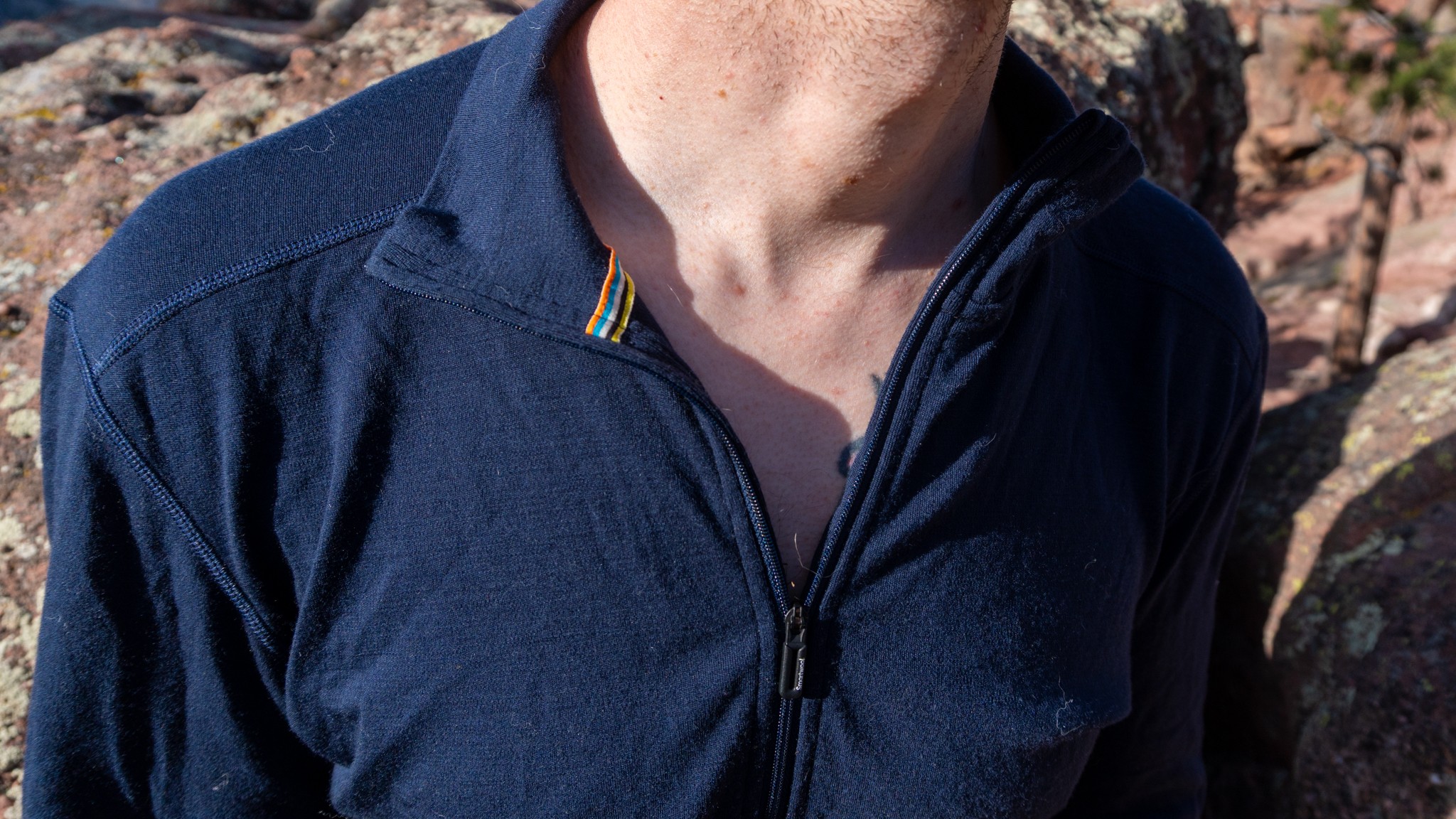 The Smartwool Classic Thermal Merino 1/4 Zip's high collar rests comfortably on top of one's shoulders when not fully zipped up. Credit: Justin Simoni