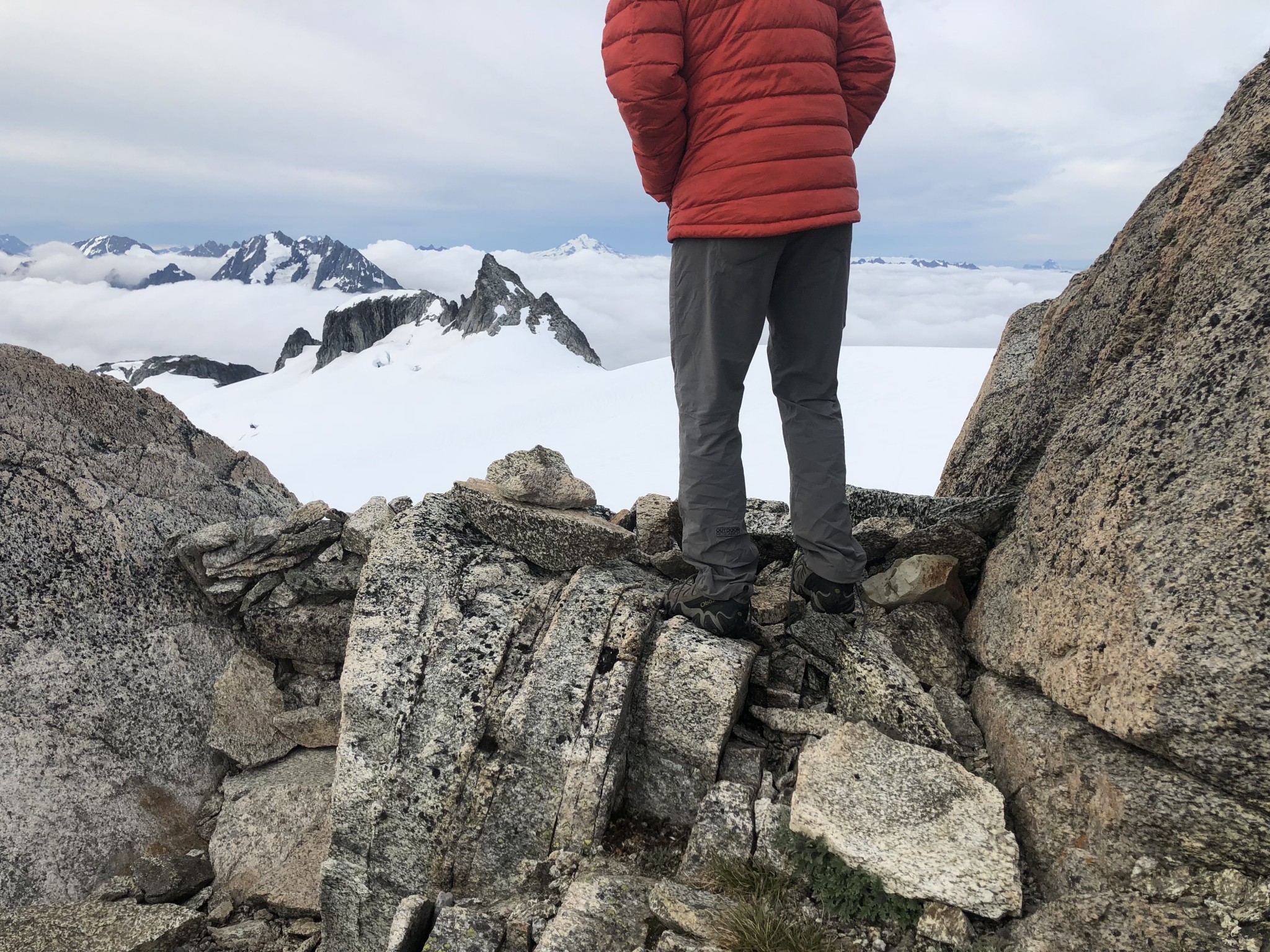 Climbers and mountaineers tend to be one of the harder user groups on their gear, particularly rain pants, as they are more likely to wear them much more frequently for a multitude of reasons, such as wind protection or colder temperatures, or to assist in (intentionally) sliding down the mountain after an ascent. Having full or three-fourth length side zippers is of higher value because of the zipper's ability to enable mountaineers to don, or remove their shell pants over larger volume boots (with the potential to be wearing crampons). Climbers not only wear their pants more frequently, but they often wear them in rougher terrain - both in the act of climbing itself, but also to embark on more off-trail travel. Due to the nature of climbing, having better mobility is of great value. While you don't want heavy rain pants, you do want them to last more than a handful of trips and to be easy to pull on over your mountain boots - or while roped together on a glacier or a cliff.