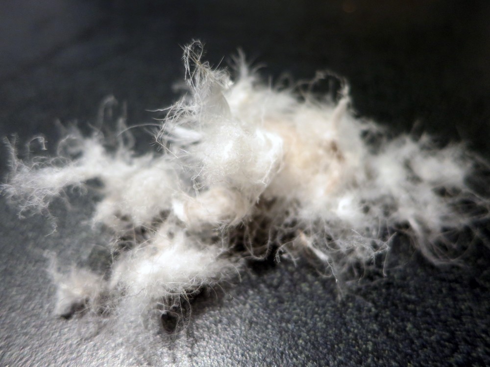 Lower quality down products may also be diluted with feathers or feather pieces, so purchasing down from a reputable source or brand is essential. Over a relatively short amount of time, these cut feather pieces will lay flat and provide little to no loft. They can also be sharper, poking through and escaping out of the garment's outer fabric.