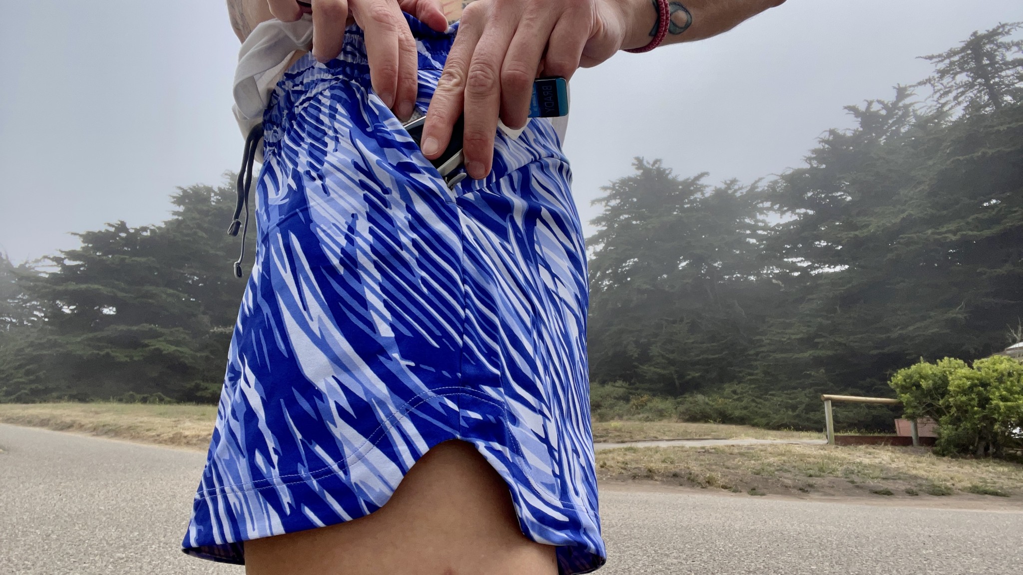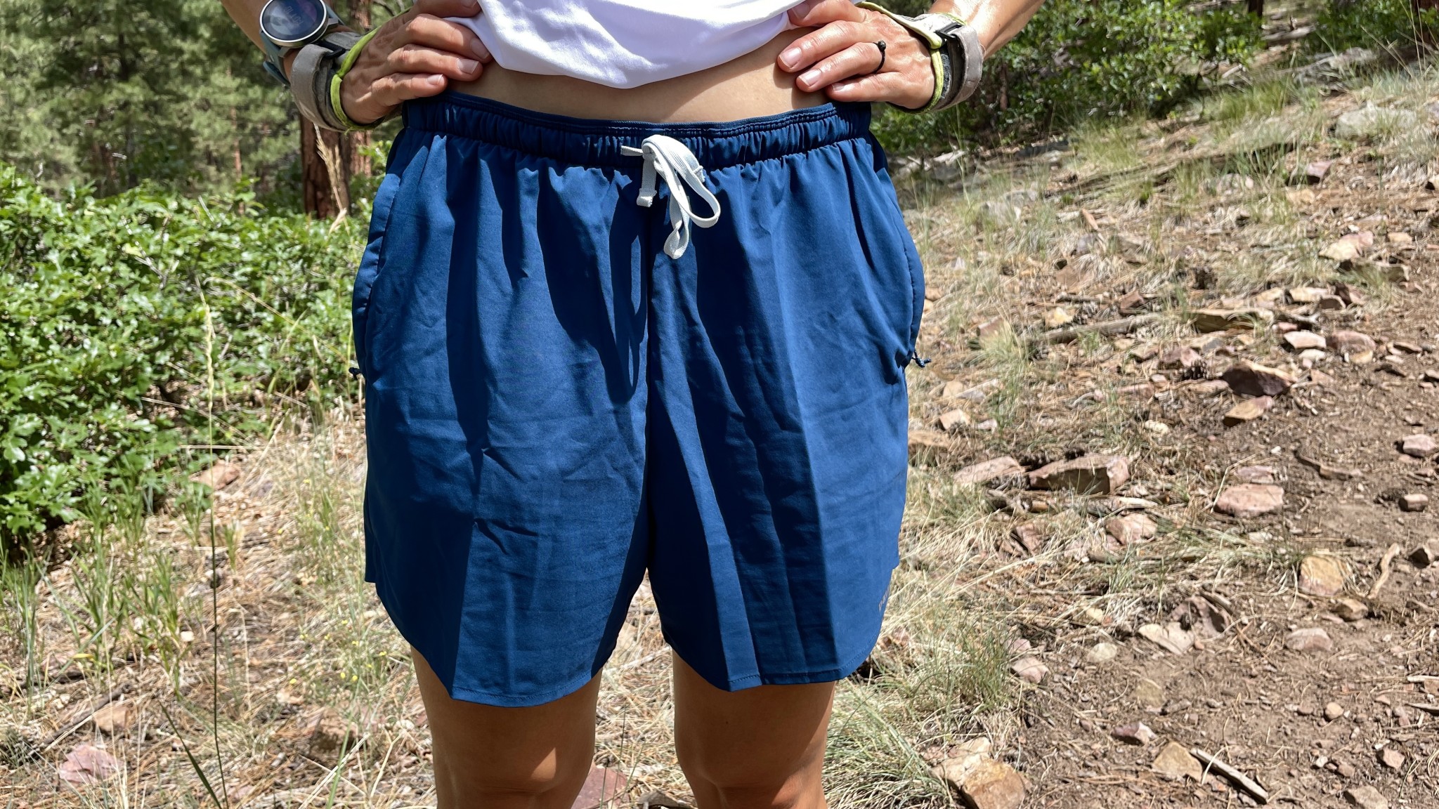 Running shorts are also usually the shortest type around. Having an inseam of 5 inches or less is what we would consider standard for women's running shorts. With a similar use of synthetic materials as what is seen in hiking shorts, the biggest differences come down to features. What is useful for hikers may be a burden for runners, so design teams work to maximize the results for each group. Water resistance can diminish the breathability of the fabric, so it's seen less often in running shorts than in hiking options. Having too many pockets may diminish mobility or breathability as well. However, there are strategic ways to incorporate a pocket for runners, even one big enough for a phone, like a rear pocket with a zipper on the back of the waistband that holds the phone snugly to avoid bounce. The priority for running shorts is material that is not cumbersome (i.e., fabric that helps in maintaining speed and mobility) and is highly breathable. Depending on how much you run, a low-mileage jaunt, even when in the rain, won't be an issue in shorts that absorb water readily. Those that are built with ultralight synthetic materials are designed to dry very quickly. More often than not, if there is not a phone pocket, then the only added feature may be tiny stash pockets stitched into either the side of the hip and/or the inside of the waistband above a thigh. Lastly, internal drawstrings to cinch an elastic waistband and ensure proper fit are also standard, as there are no buttons, snaps, or zippers for closure.