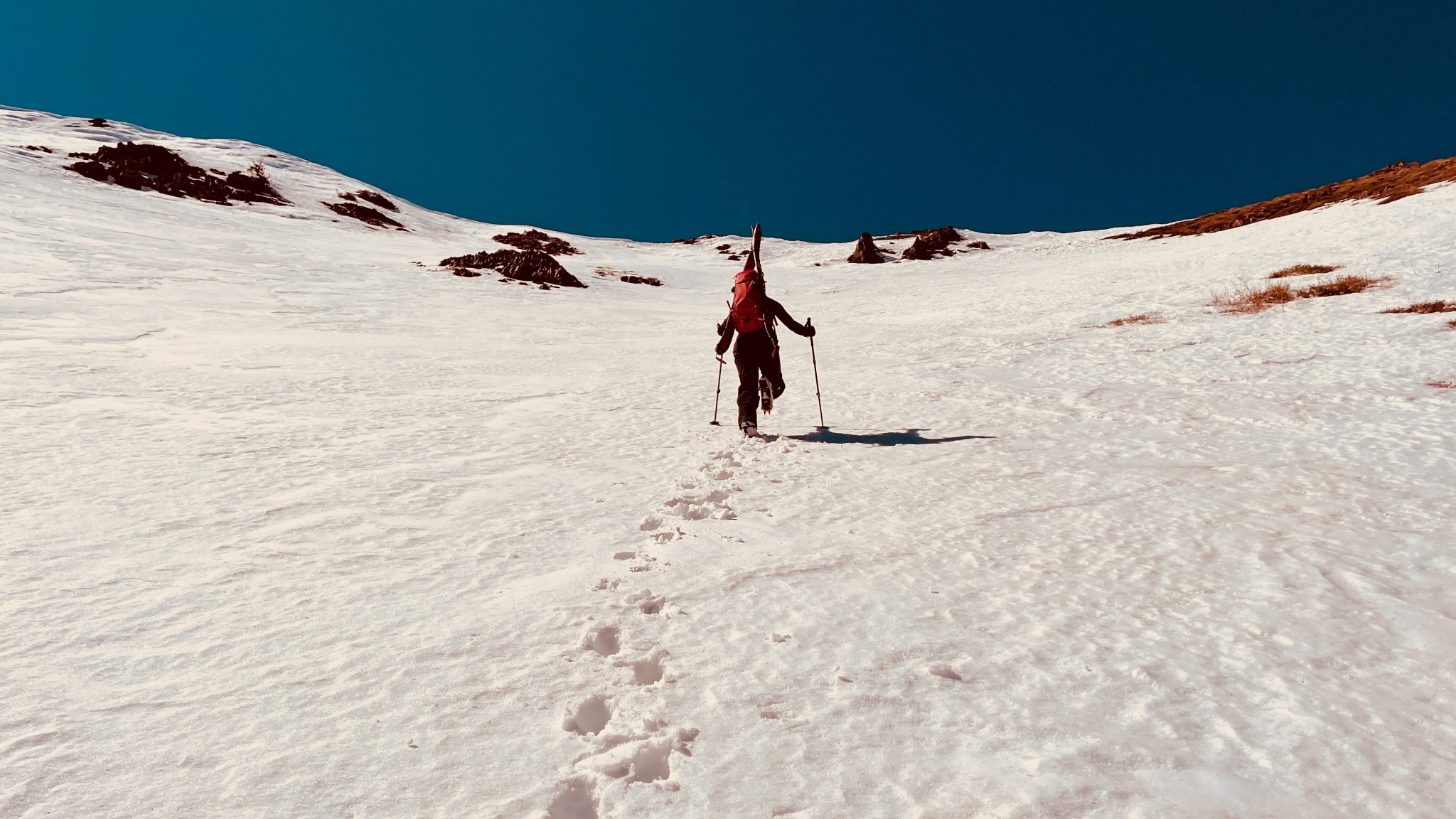 The Patagonia Capilene Midweight kept us warm while we kicked steps up McGee Mountain in the Eastern Sierra.   Credit: Steve Mace