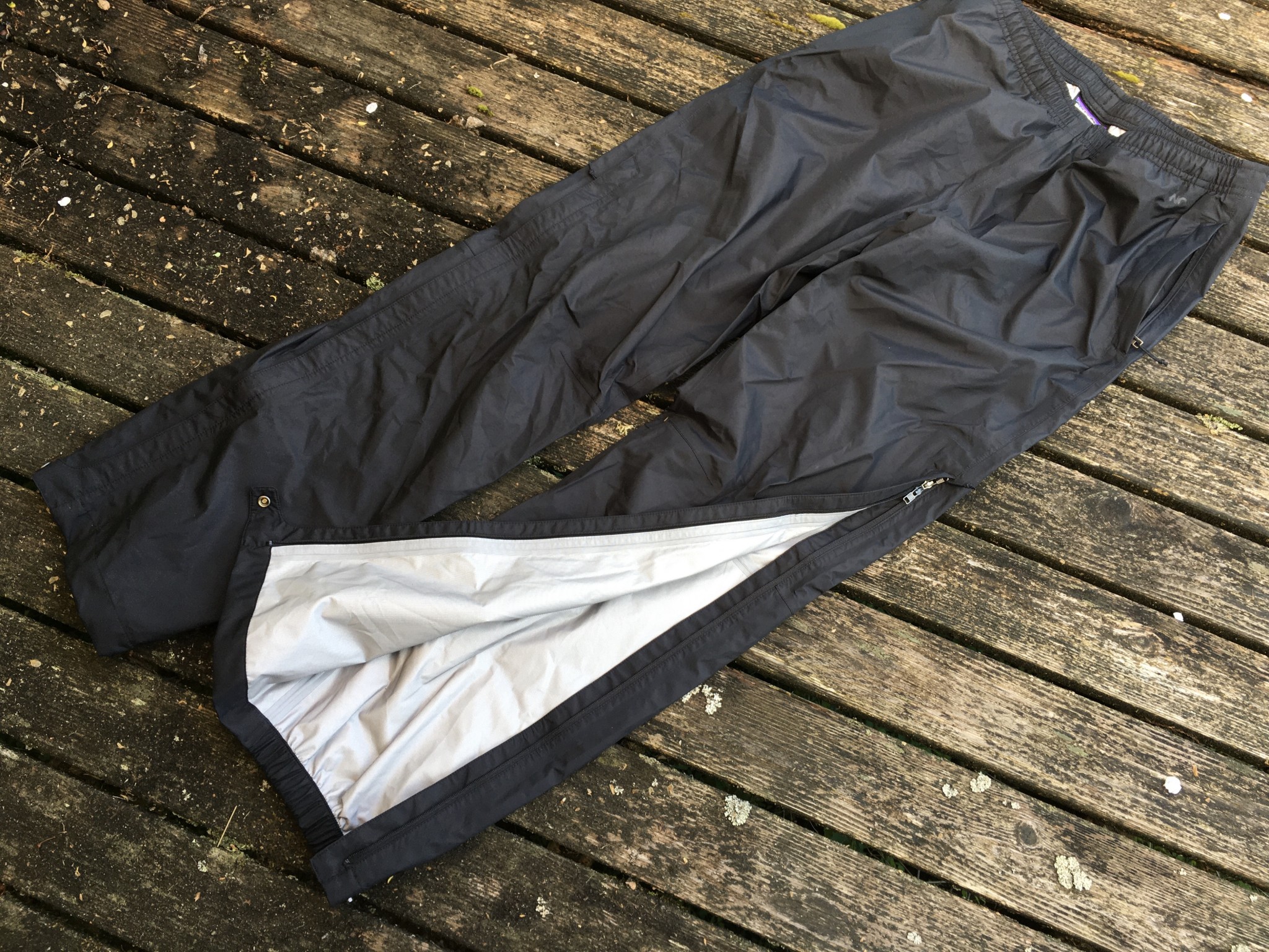 2.5-Layer ShellsWaterproof/breathable fabrics described as having 2.5 layers are often lighter than traditional 2-layer designs (which are harder and harder to find, especially in pants). These materials have virtually eliminated the need for a protective lining fabric by using a raised texture screened onto the inside of the face fabric (membrane) to keep it off your skin and protected from the oils--and whatever else might be on your skin while hiking in the woods. The majority of the rain pants we considered for this review are 2.5 layer shells. These jackets are then coated with a Durable Water Repellant (DWR) finish, which ensures the pores of the jackets remain unclogged by water or snow, thus maintaining the jacket's breathability--until they get clogged with your sweat and dirt, so remember to wash and dry these jackets!