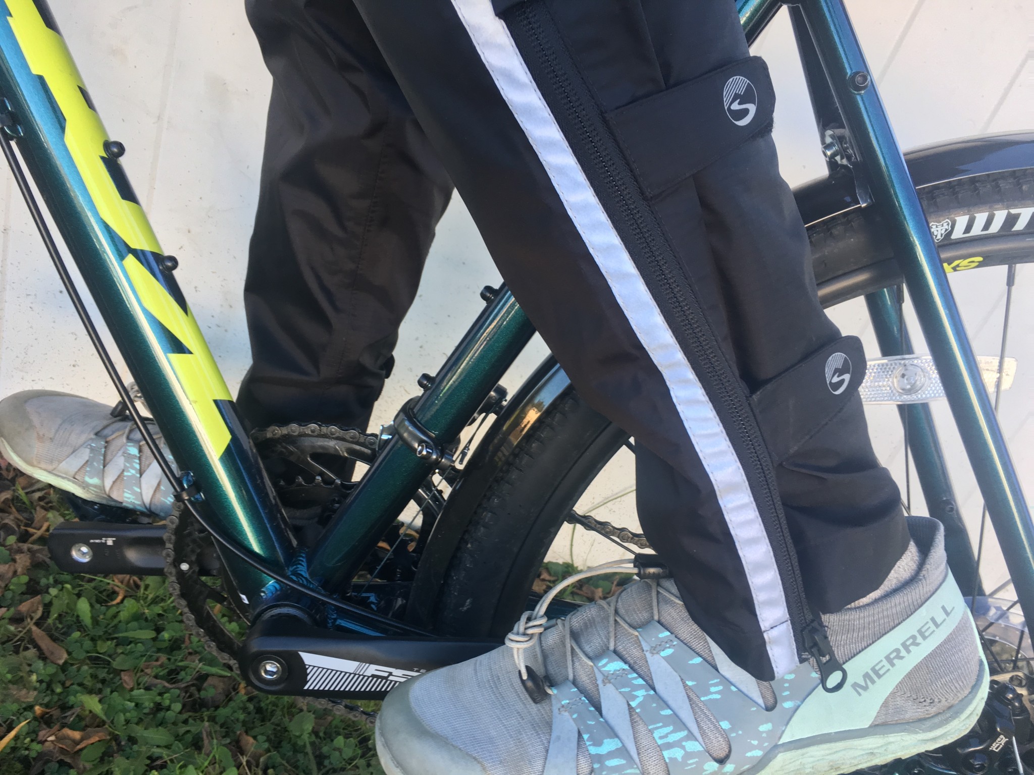 We then adjusted the scores for how compact the rain pants were. To assess this, we packed each pair of pants up as small as possible and set them side-by-side. Then we sorted them, relative to each other, to see how to adjust the weight scores.