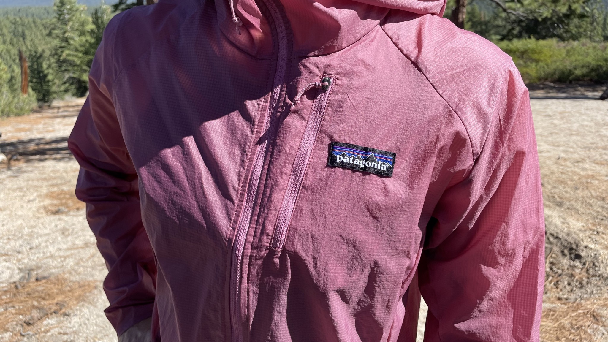 The updated design of the Patagonia Airshed Pro includes a chest pocket that is large enough to fit an iPhone 16 with a thin case. Credit: Ally Arcuri