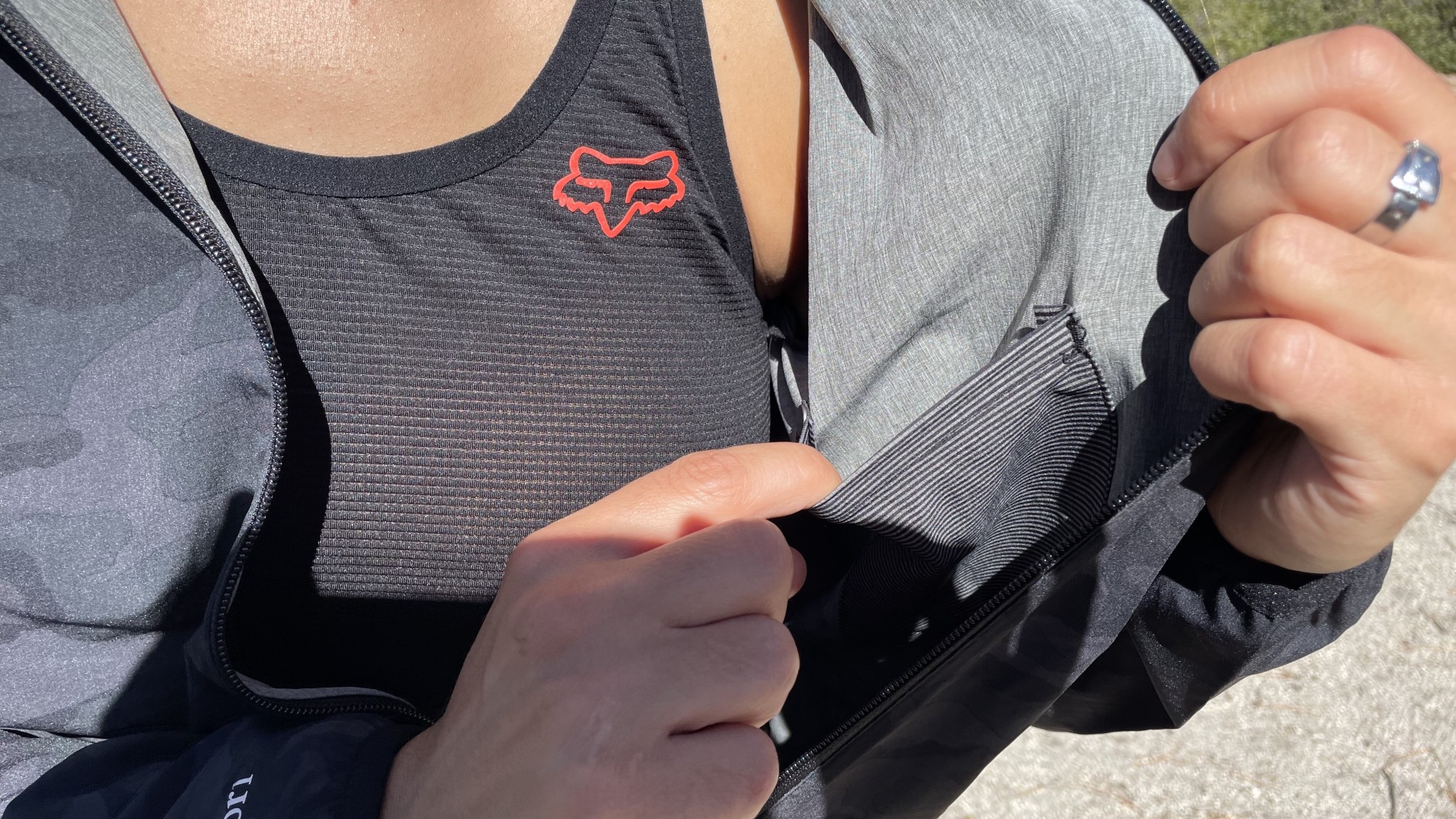 We love the small, useful pocket inside the uninsulated Vuori Shell. Credit: Ally Arcuri