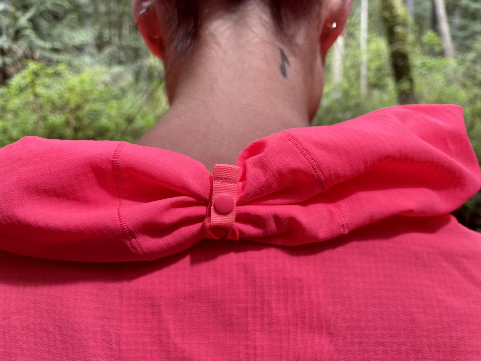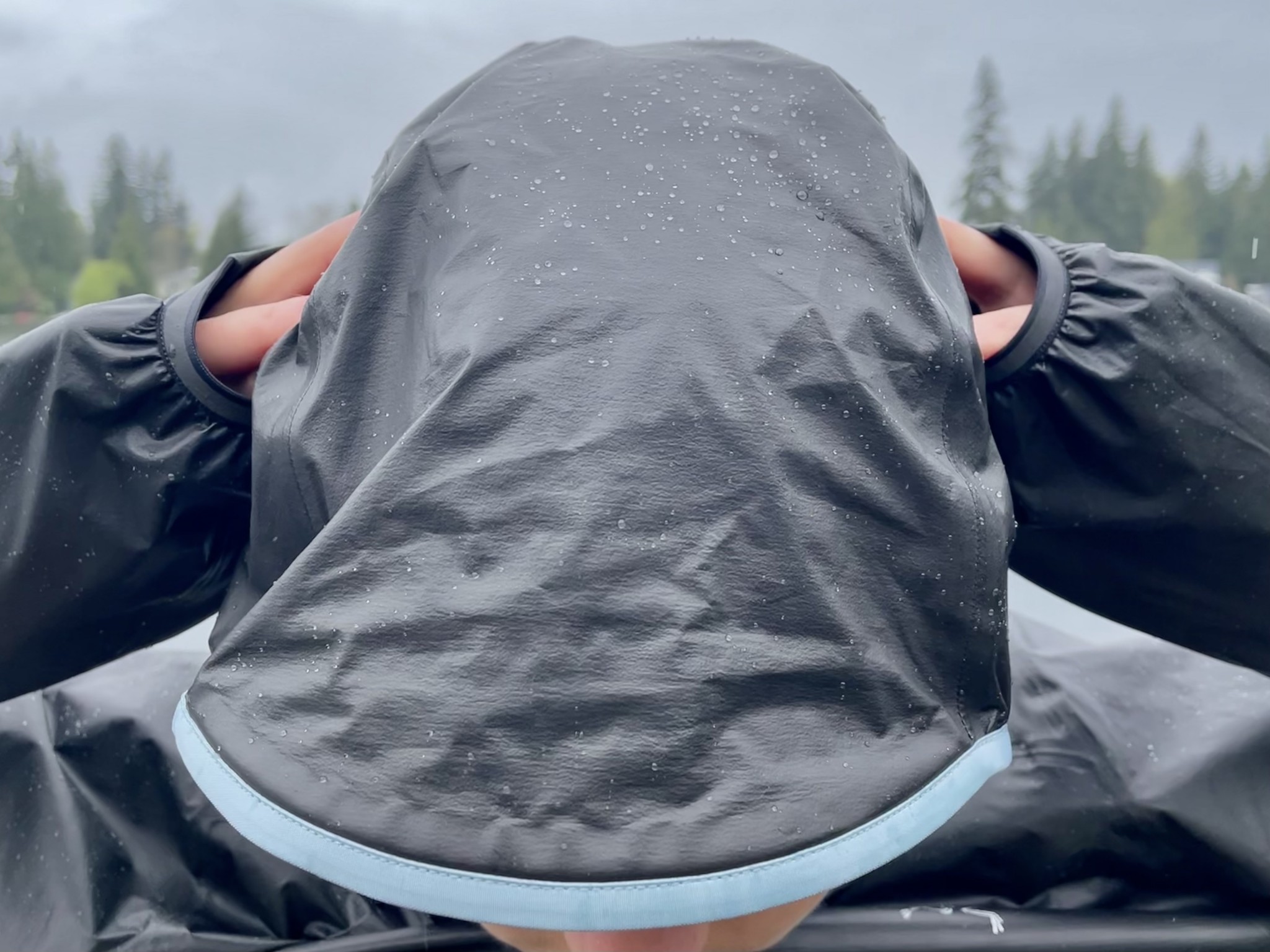 We like hoods that are either soft and stretchy or have enough adjustability to stay close to the head. Many of the hoods we tested wouldn't get snug enough and then just acted like parachutes when we picked up speed. We noticed a relatively new feature of hoods this time around. We noticed that many hoods are now engineered with a lateral bungee near the base of the skulls (at the suboccipital, anatomically speaking). By cinching this bungee tight, you can customize the coverage of the hood and prevent it from flapping in the wind. Most of the hooded jackets even have a bit of elastic around the hood's edge. In addition to the lateral backside bungee, this elastic helps secure the hood in place on windy days.