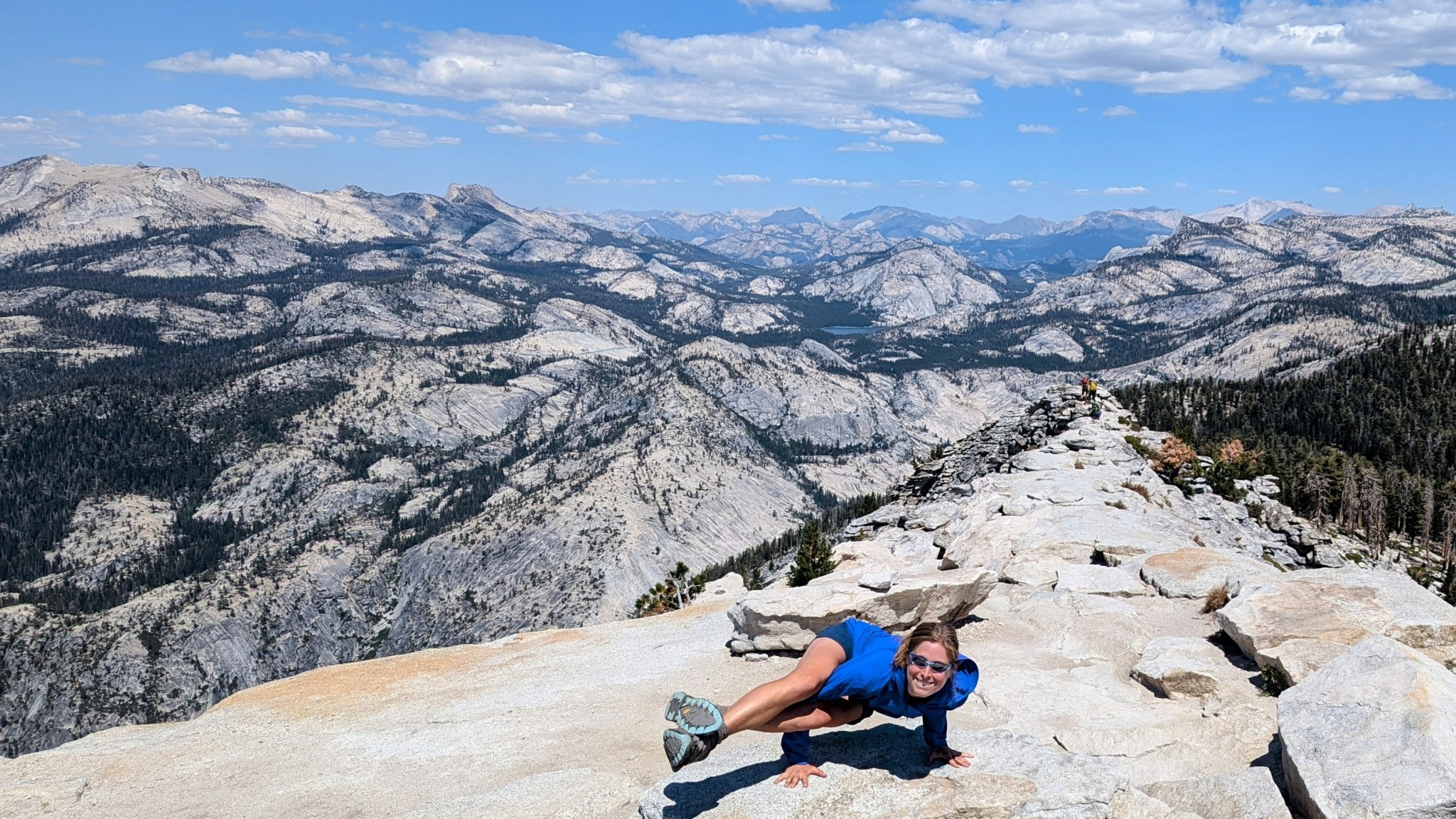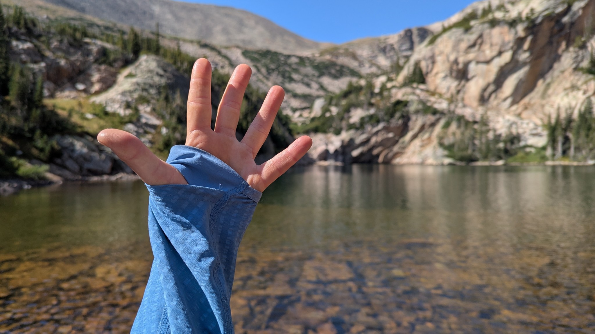 With UV 40 plus protection, we wore the Arc'teryx Gamma Lightweight Hoody as sun protection all day, especially for well-deserved “lizarding” on the summit. Credit: Kate Pitts