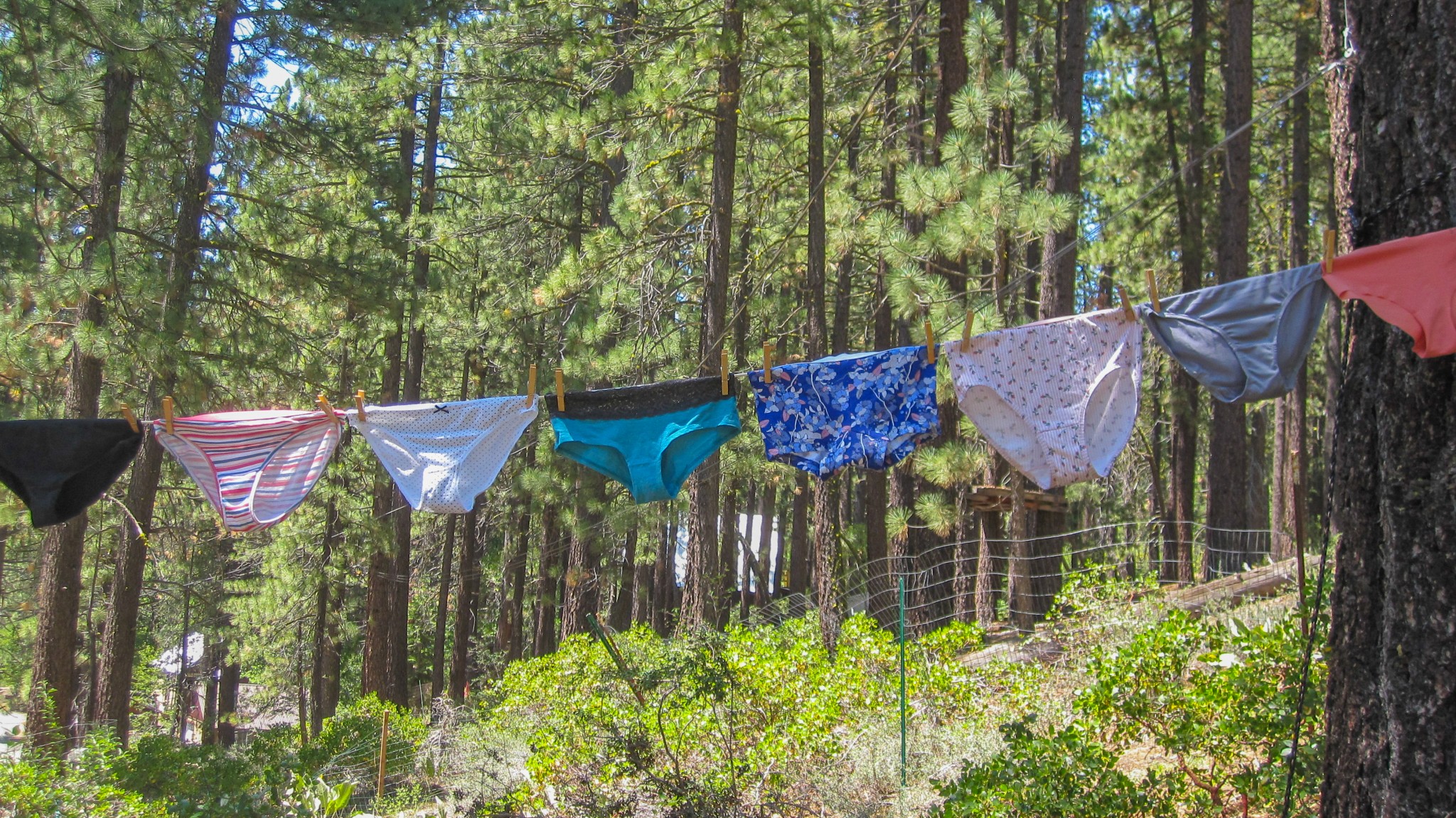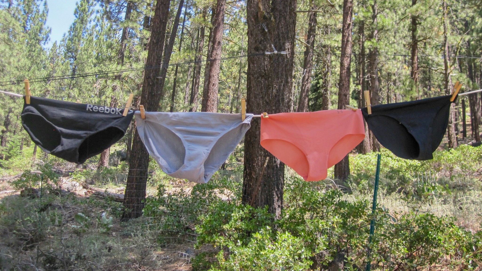 Testing how quickly each style of underwear dries on the line.