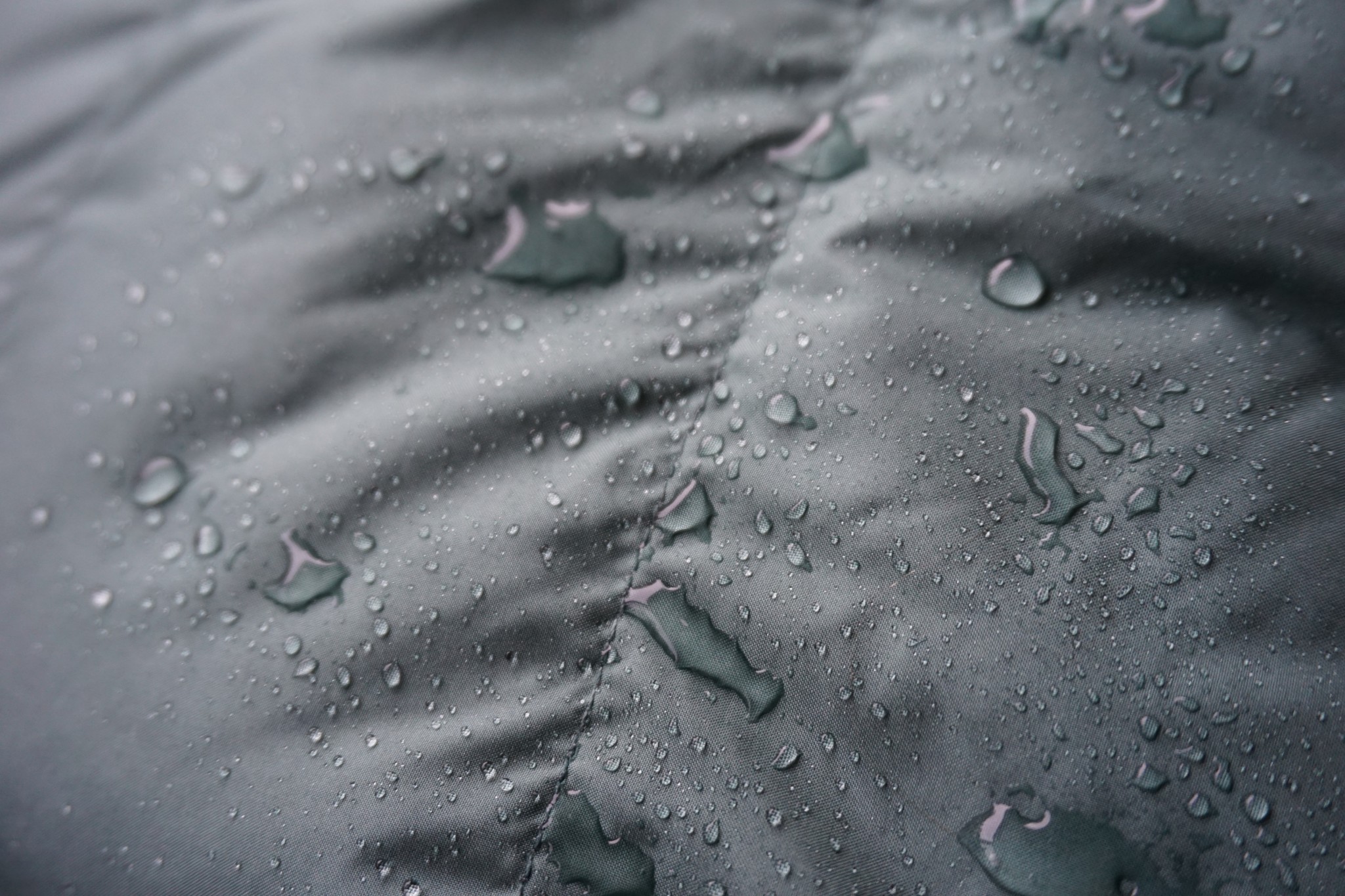 A DWR coating helps water bead up and roll off a jacket, but it doesn't make it waterproof. If it's not paired with a waterproof membrane, DWR treatments only briefly extend your time in the elements. Nylon and polyester fabrics have a low absorbency rate. When treated with a DWR finish, they can shed water well for quite a while.