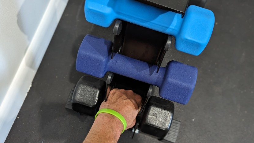 Adjusting the Core dumbbell is quick, easy, and can be done with one hand.