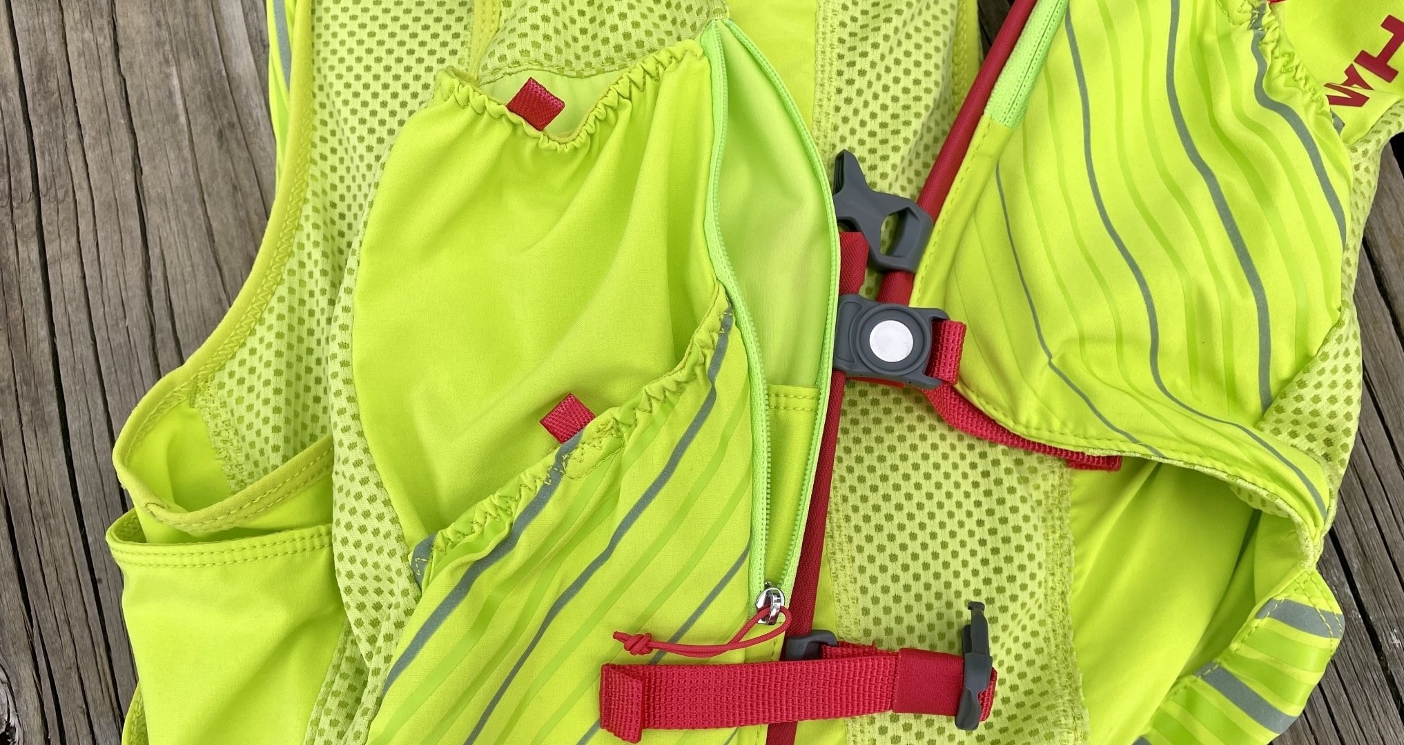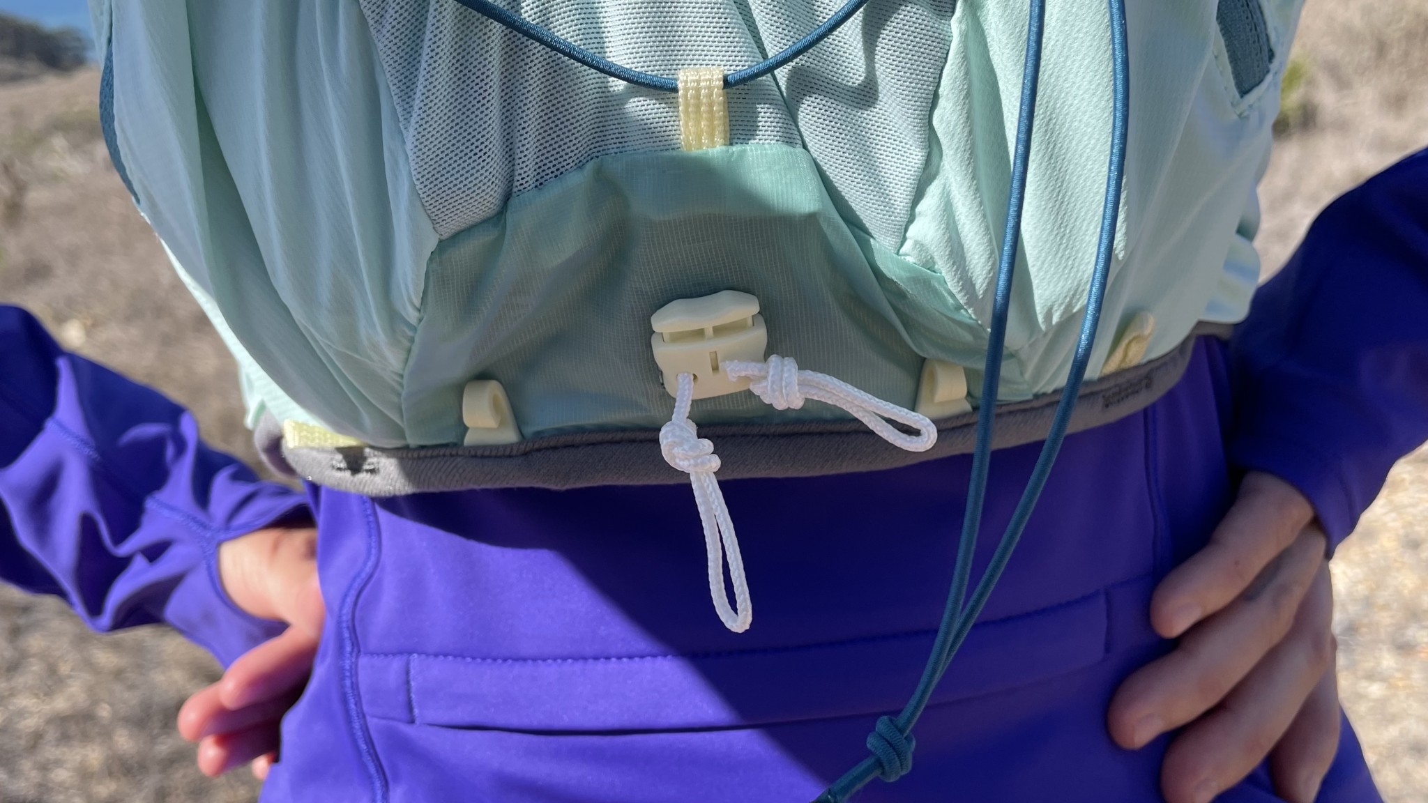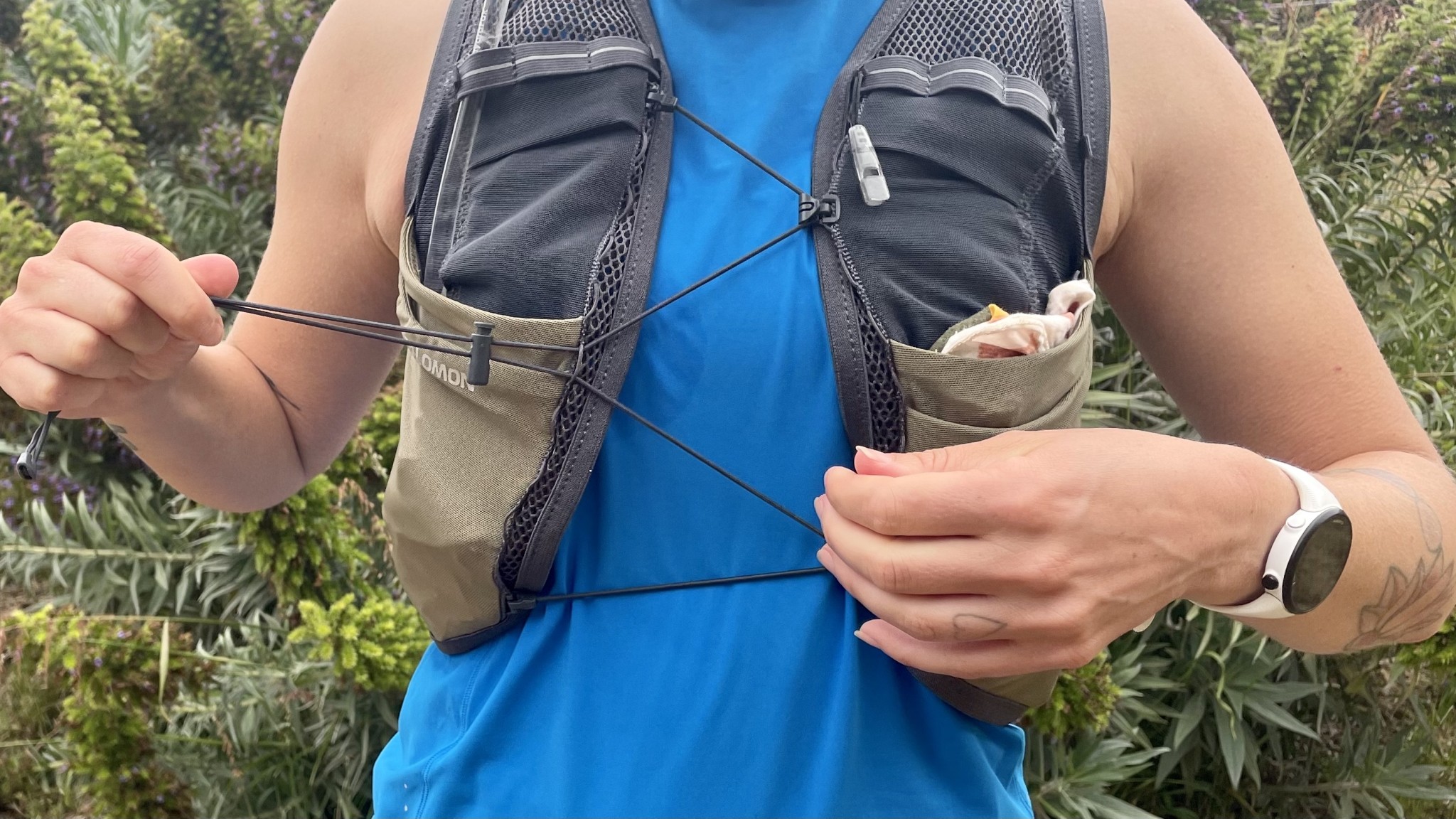The bungee closure system of the Active Skin 8 is soft and stretchy, which adds to this vest's overall comfort. Credit: Ally Arcuri
