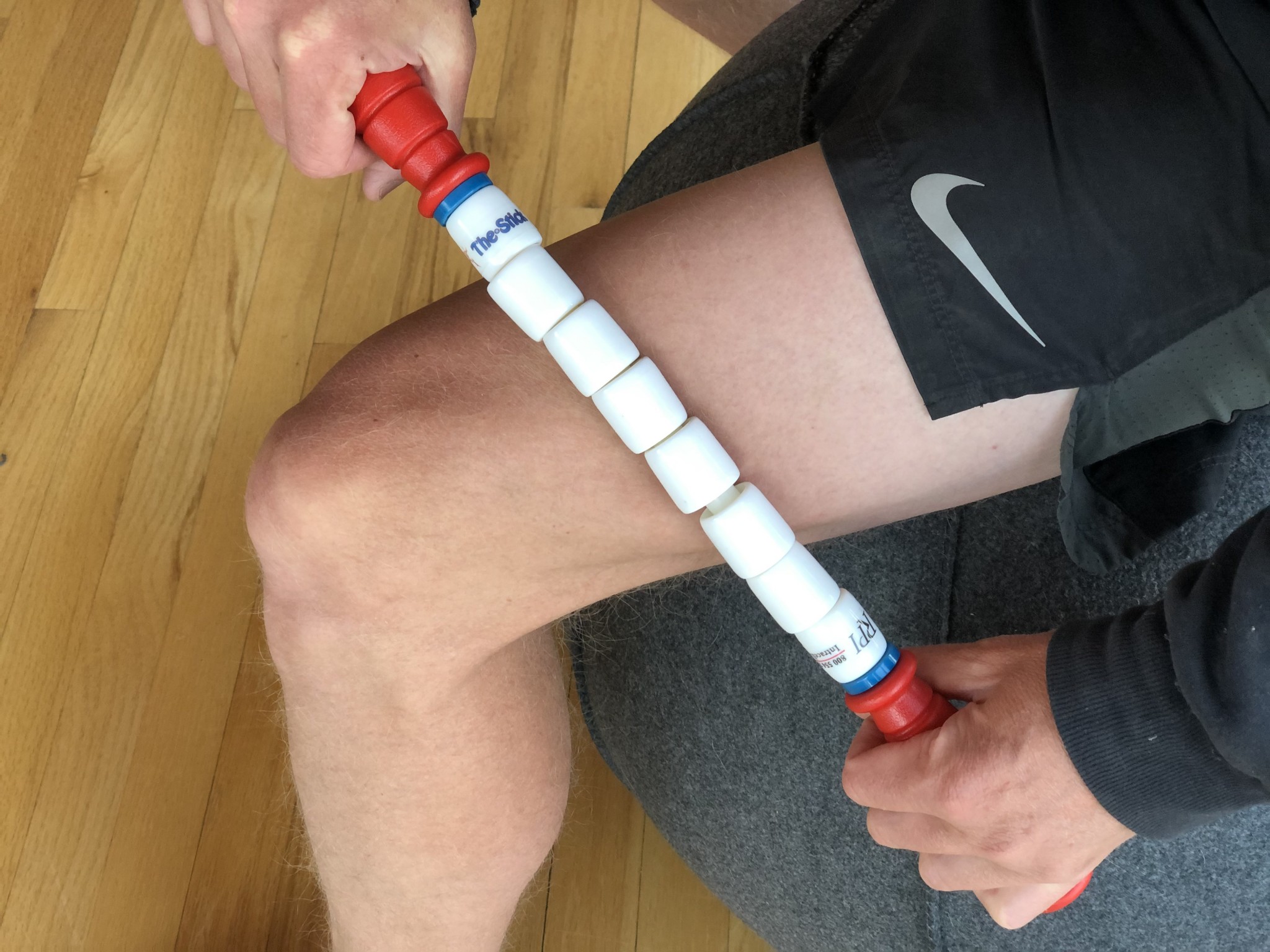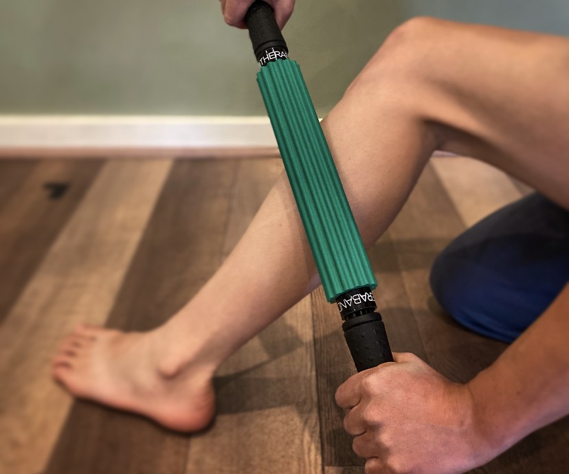 The TheraBand Roller Massager+ offers a more rigid alternative to the Tiger Tail or The Stick. Its hard plastic inner tube, large handles, and semi-rigid rubber outer material allowed us to target as much pressure as we could stand. It offers a great balance of comfort and support and was favored by our testers for how easy it was to roll over just about any surface. It also worked well for other parts of the body, including forearms, hips, and glutes. What really set this massage stick apart from others was how the single plastic tube and rod structure worked with the supportive rubber outer. The single moving part offers minimal resistance, while the rubber outer is just supportive enough to be comfortable on bare skin.