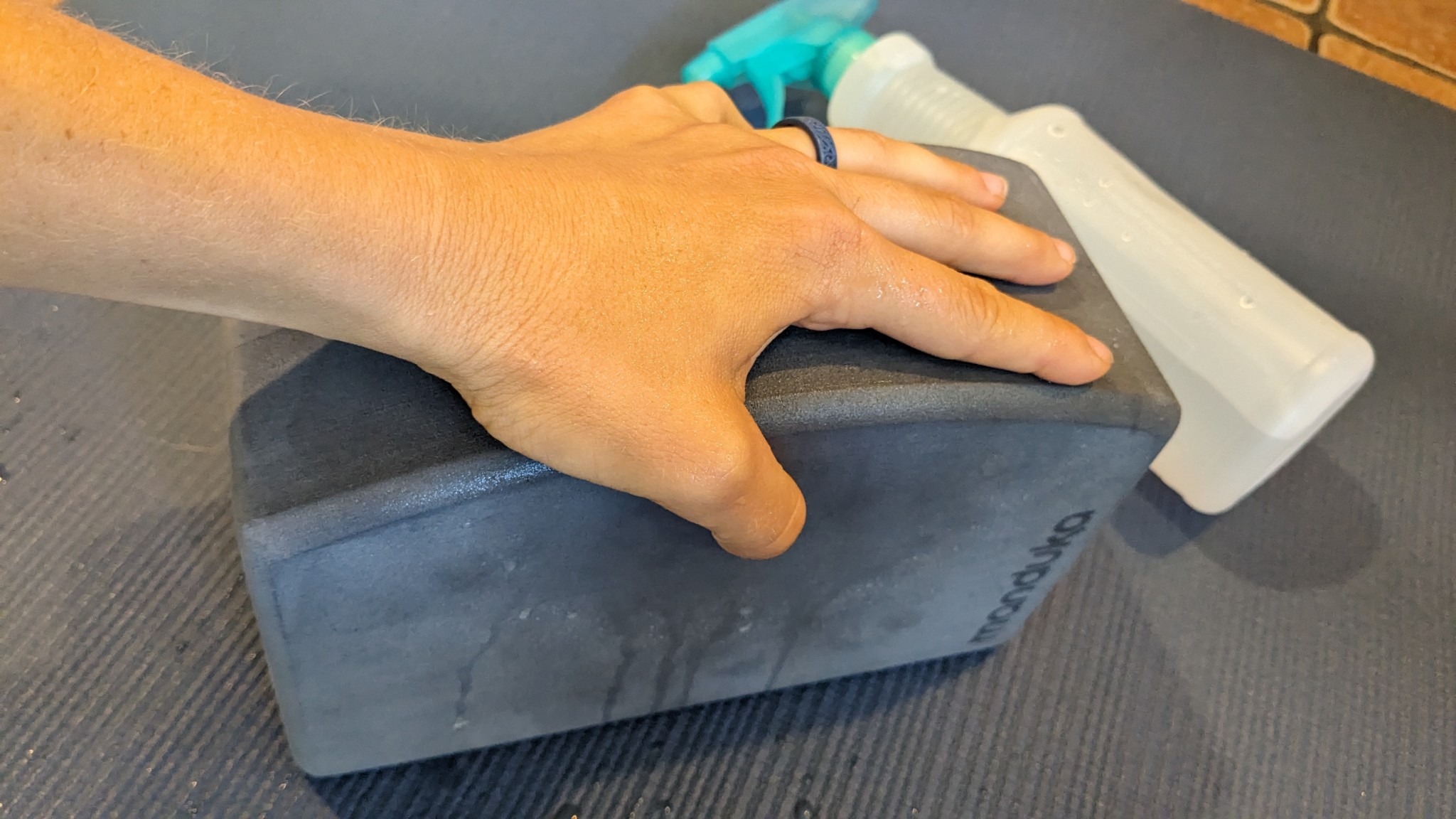 You want a block that grips the floor and has enough friction so that you can trust your hands not to slip. We simulated sweat on our hands by spraying them with water to ensure every block received the same moisture. Though it isn't common practice in the studio, we had fun trying each water-soaked block (don't try this at home!) to sort out which ones became a slip-and-slide and which gave our sweaty palms a secure grip. We also wanted to see how slip-resistant blocks were on different surfaces, including carpets and yoga mats of various materials.