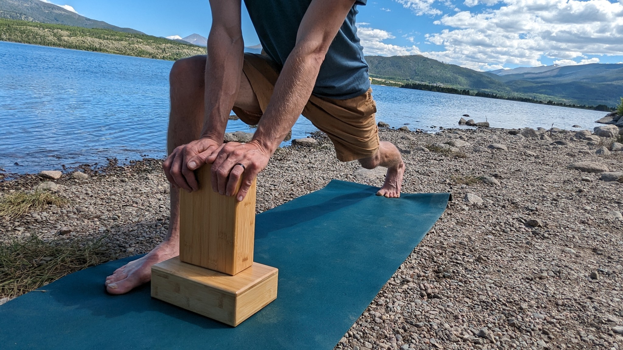 While some blocks are stable only at the lowest setting, more substantial blocks made of cork or wood can be stable at medium and high orientations. Stability at higher settings places your hands higher in space, allowing your feet room to pass through the window of your arms. This helps you complete challenging transitions like jump-throughs — maybe without touching a toe to the ground. The JBM International is one of the most stable sets in our test, and we felt grounded even in dynamic arm balances on each orientation of the block. We enjoyed the even weight and grounded sensation of moving with these well-crafted cork bricks.