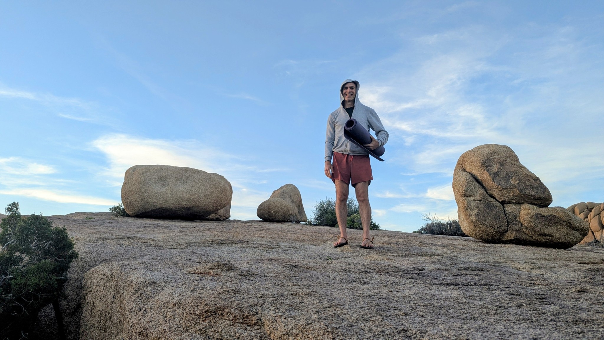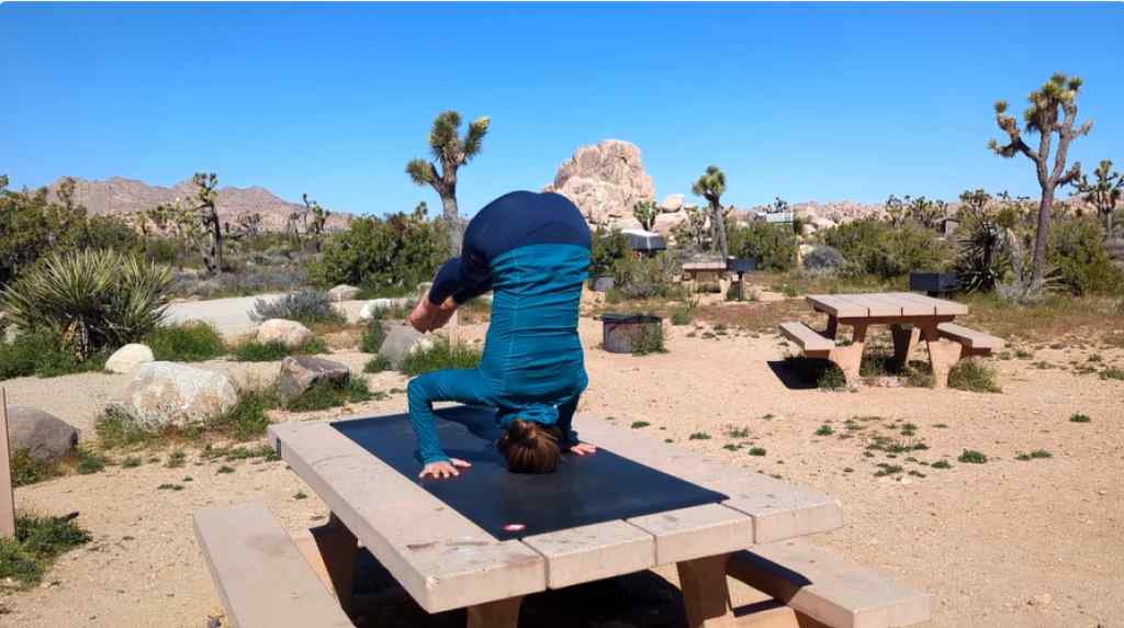 On bare Joshua Tree rock, the Jade Harmony 2.0 demonstrates the sticky traction natural rubber is known for, keeping poses stable, even in outdoor asana practice. Credit: Kate Pitts