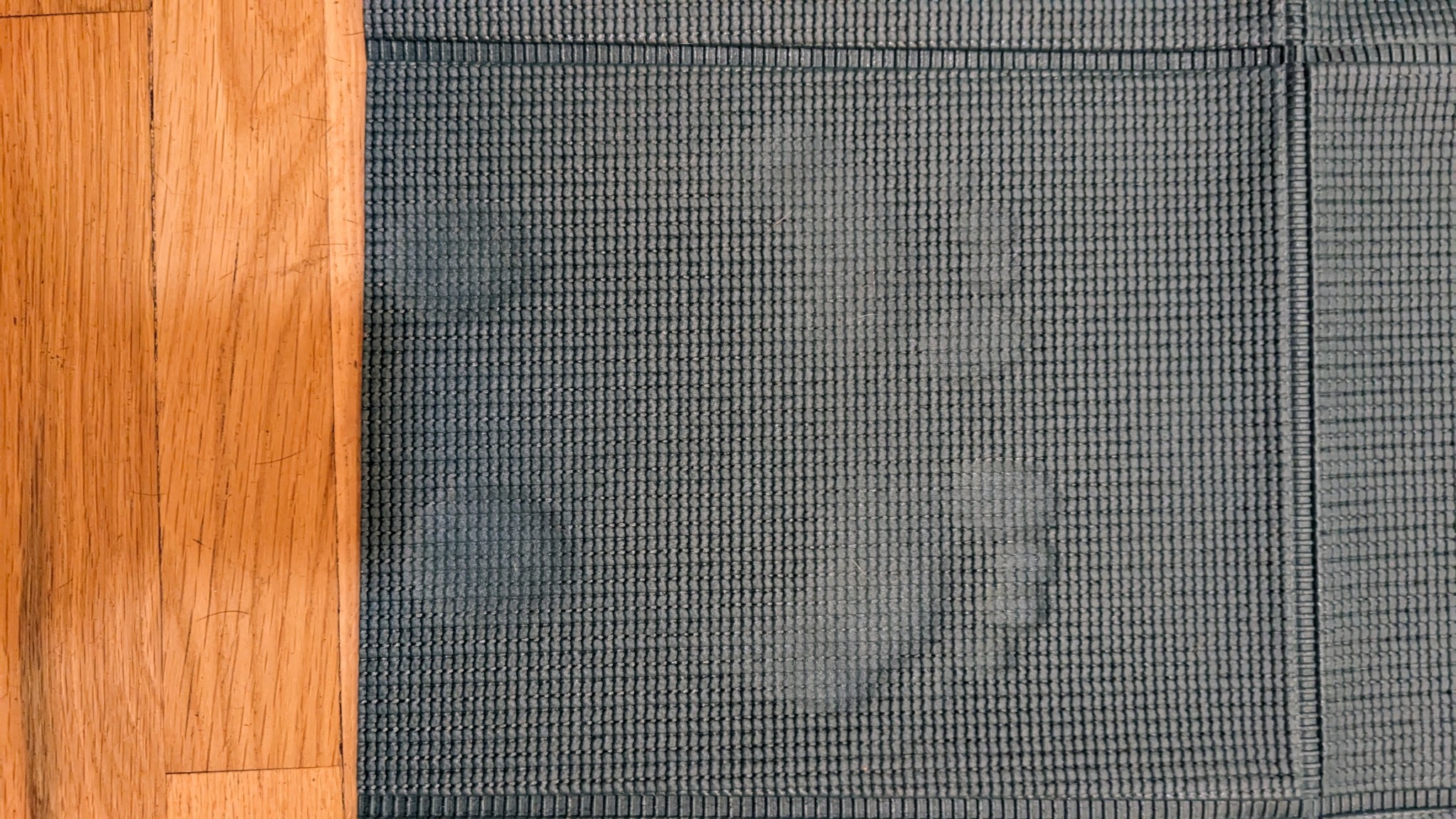 Finally, we wanted to find mats that grip the ground and won't shift under your feet. To do this, we first roll over our toes into down dog, as this high traction transition between the hands and feet puts opposing forces on the surface — flimsy mats will buckle or wrinkle in the middle. Finally, we wanted to find mats that lay flat and didn't budge with movement. We measured how much mats naturally curl above the ground, and then we forcefully shuffled on top of the mats, weeding out the shimmies and wrinklies from the steadfast foundations.