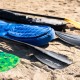 Paddles with a TwinPin mid-shaft lever are also considered easy to adjust. The SUP Supply 3-Piece Paddle and BPS models feature this technology, which operates by pushing out a “C” shaped collar clamp that releases an attached stainless steel pin from its adjustment hole. This allows you to adjust the handle end of the shaft. When you've reached your desired length, you push the clamp back in towards the shaft, and the pin goes into the nearest hole.