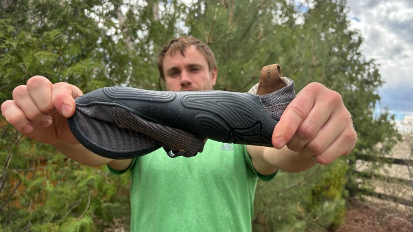 Your feet probably don't twist up like this, but doing so with the shoe gives us a good idea on how flexible they are.