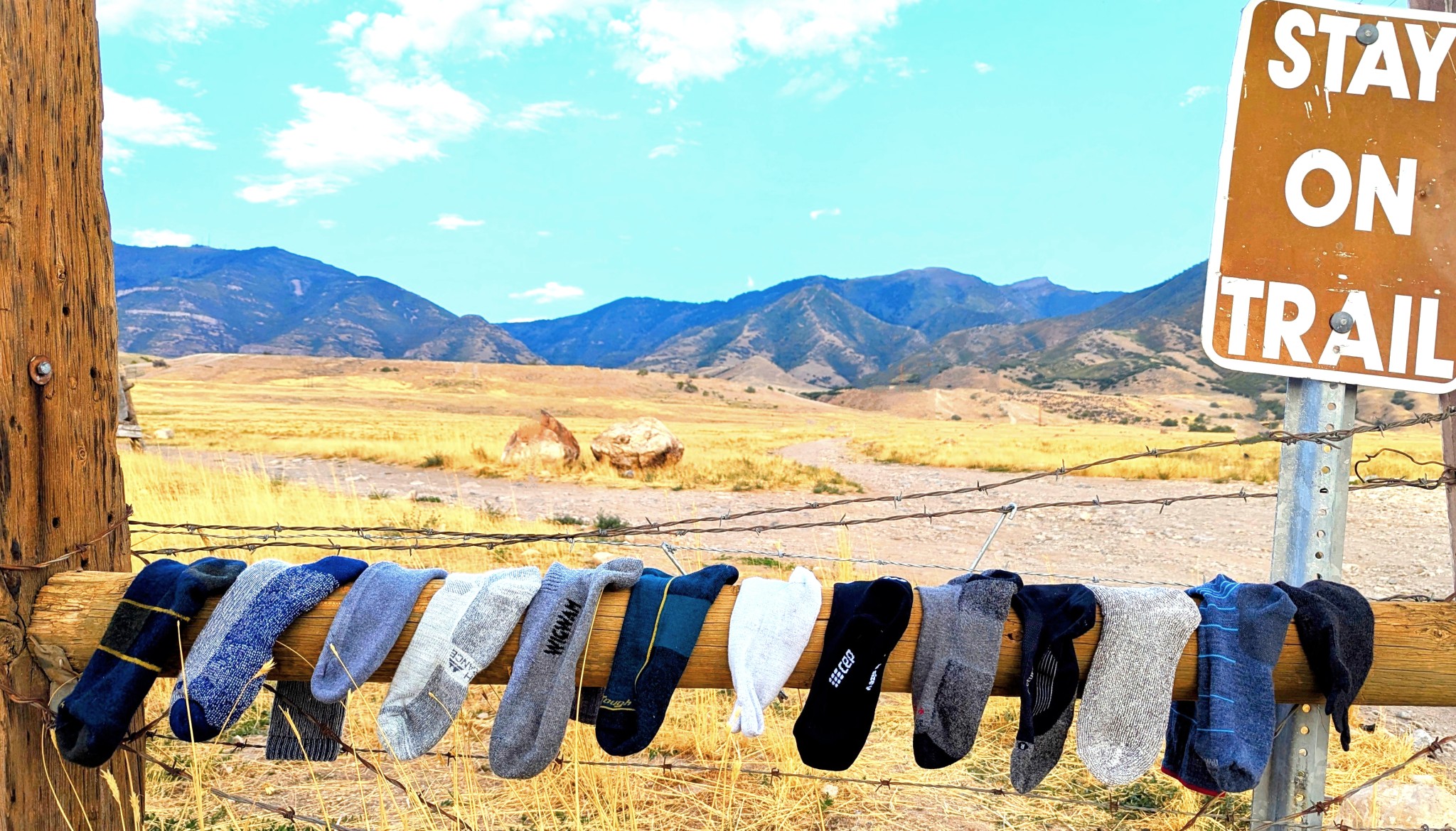 Testing our Danish Endurance's ability to quickly dry at home, as well as its ability to continually wick moisture away from our feet while spending time on the trail in the hot summer sun. Credit: Jason Wanlass