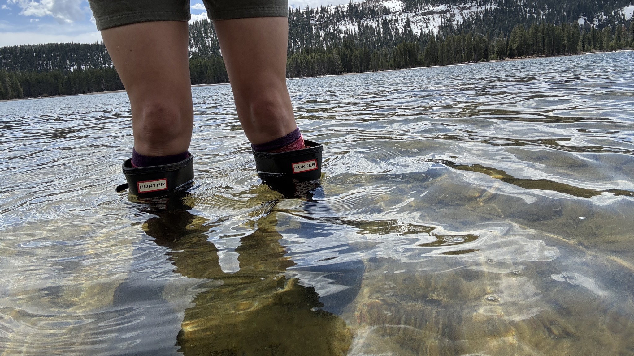 Testing the waterproofness of the boots at the lake. Credit: Brooke Hess