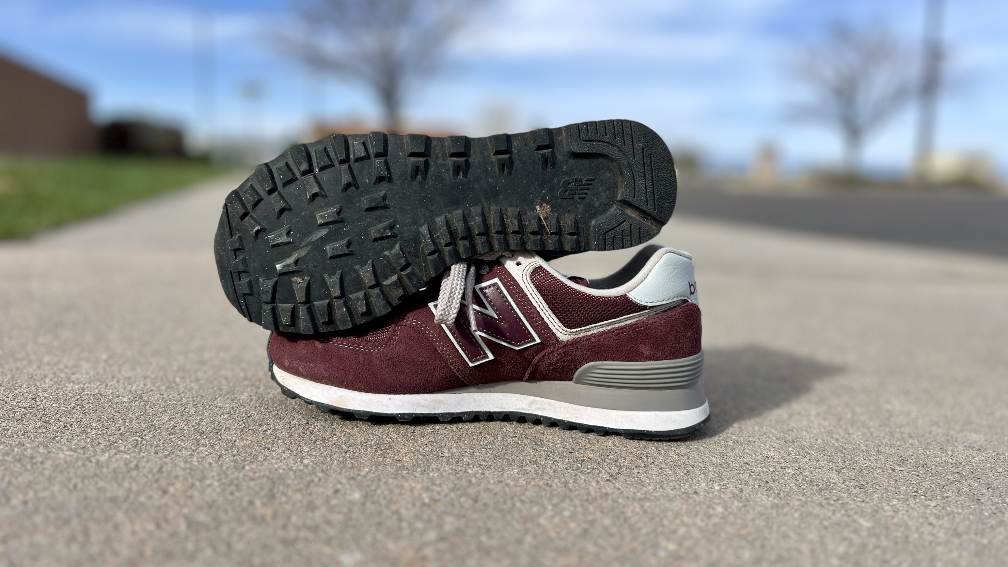 The New Balance 574 Core is another shoe that does well on various surfaces thanks to its lug pattern. Credit: Mallory Paige