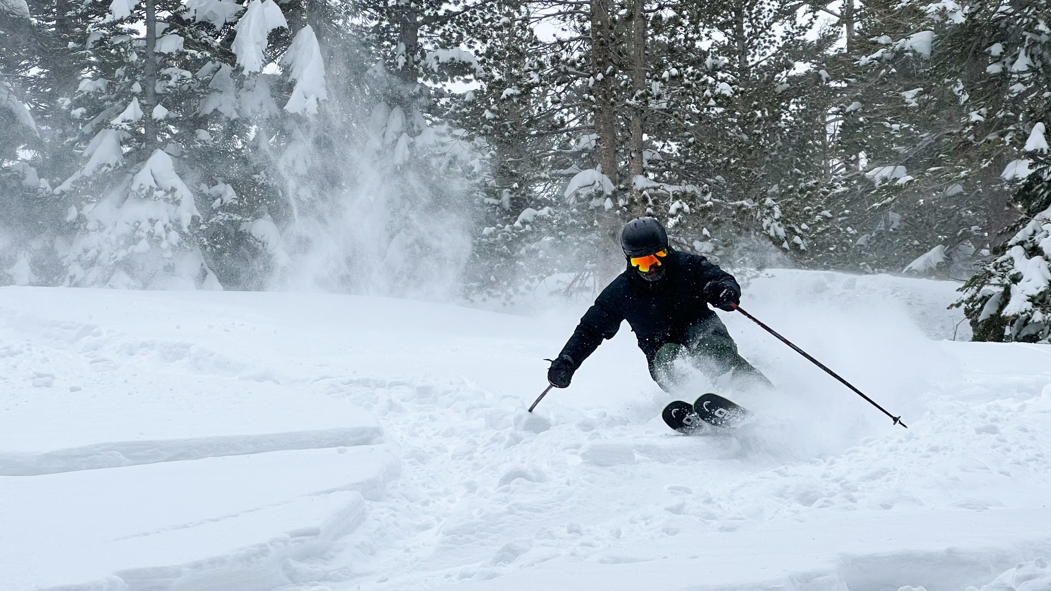 For Powder Performance, we focus less on the pitch of a run and more on how well each ski floats, how it changes in flex when submerged, and its overall stability moving through heavier snow – like the classically-known “Sierra Cement.” When completely submerged, skis can behave much differently, sometimes becoming squirrelly or bending less predictably. These are all factors that impact our Powder Performance score.