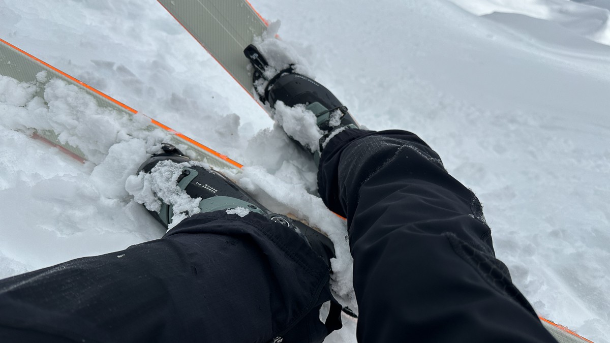 On the flip side, it is challenging to put skins on your skis while they remain on your feet, so being able to transition on this end more quickly is a slightly overrated, over-publicized feature. The one time we dig being able to go into “cross country” mode where you want your heel free, but no skins on, is during the descent and while traveling on long, flat, snow-covered roads and frozen lakes.