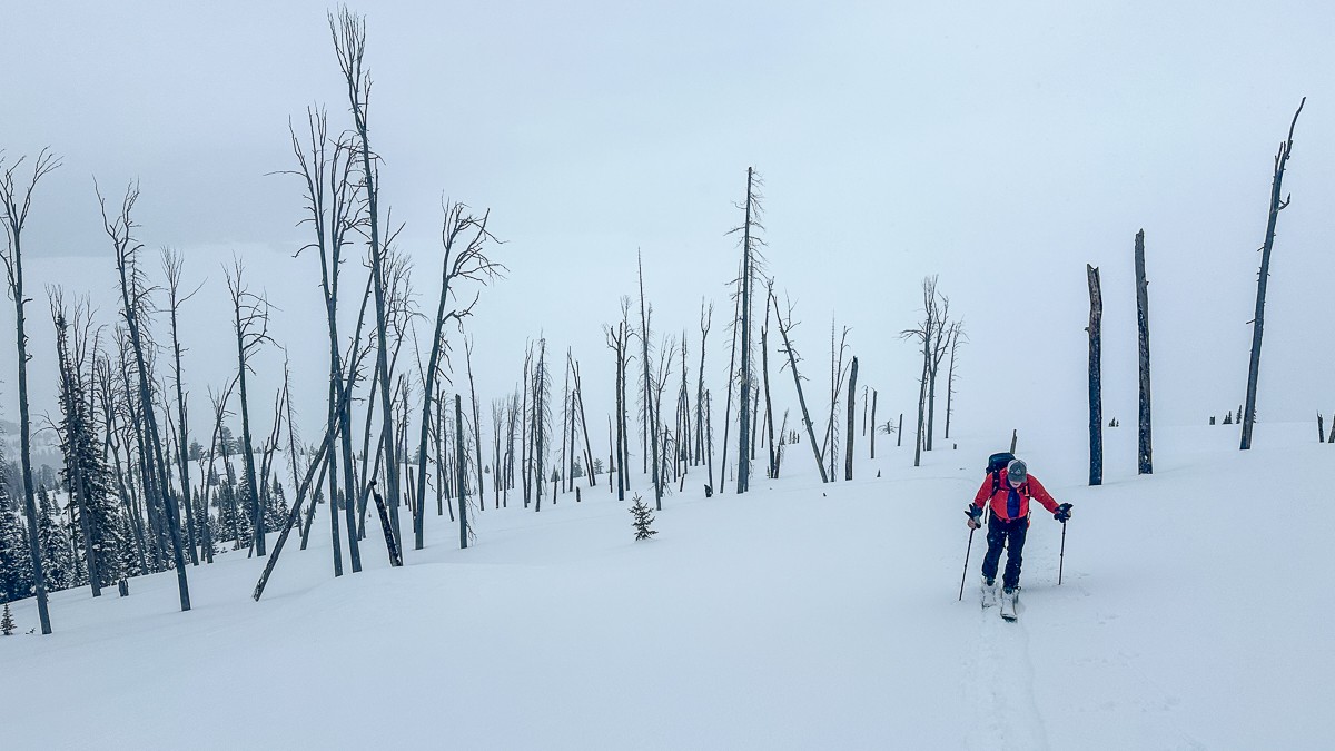 Touring on the Duke PT bindings on an excellent mid-winter Teton powder day. Although the weight is more than we want on the way up, we'll take the performance on the way down. Credit: Jediah Porter