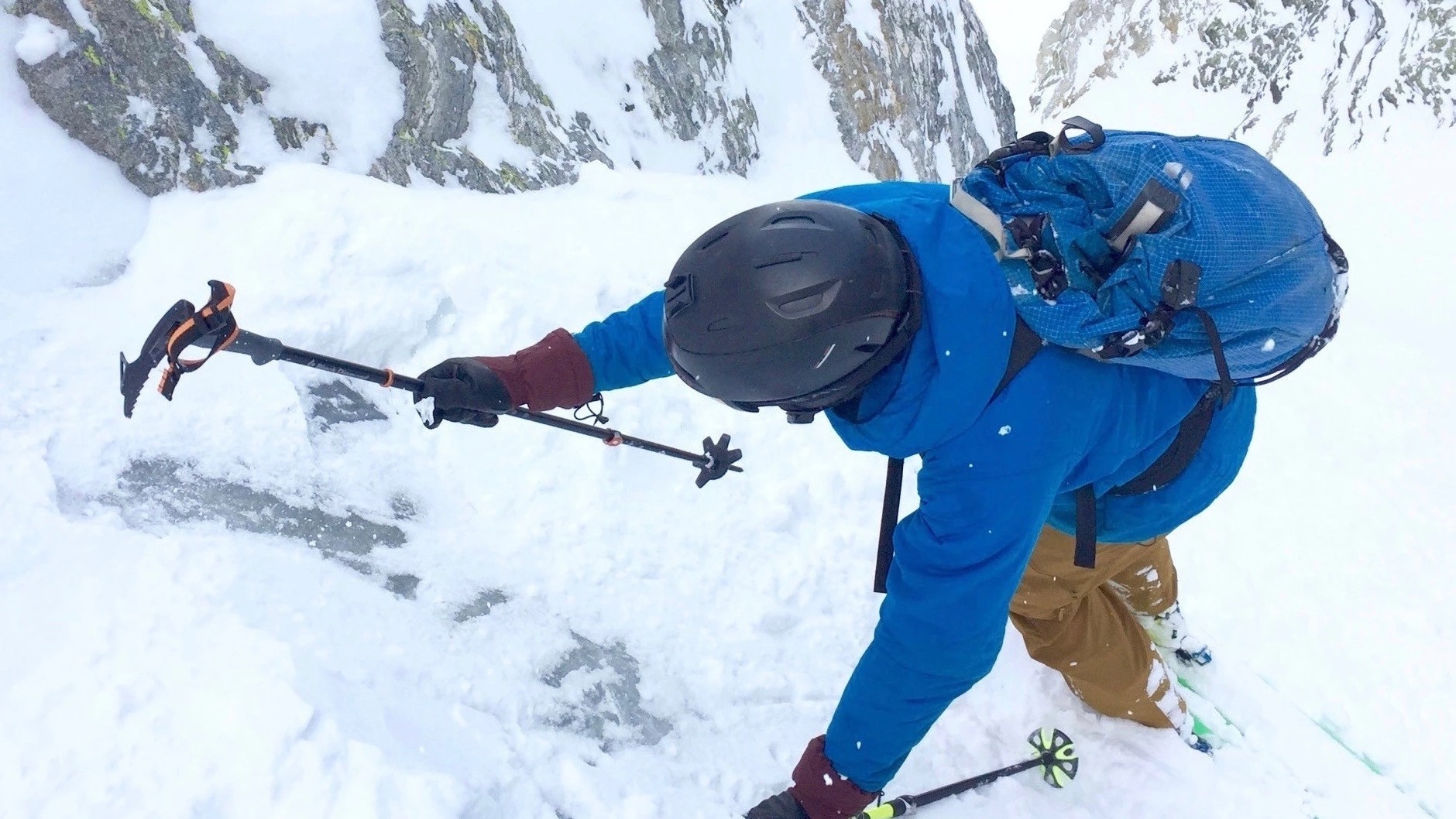 Ski pole/ice axe hybrid poles have seen a surge in popularity in the backcountry, often seen as a suitable replacement for an ice axe in steep terrain, saving weight for the user. We used each of these poles in firm conditions while skiing tight, steep couloirs, and judged how well each pick digs into the snow and arrests a slip. We also found water ice to see how each pick holds in ice.