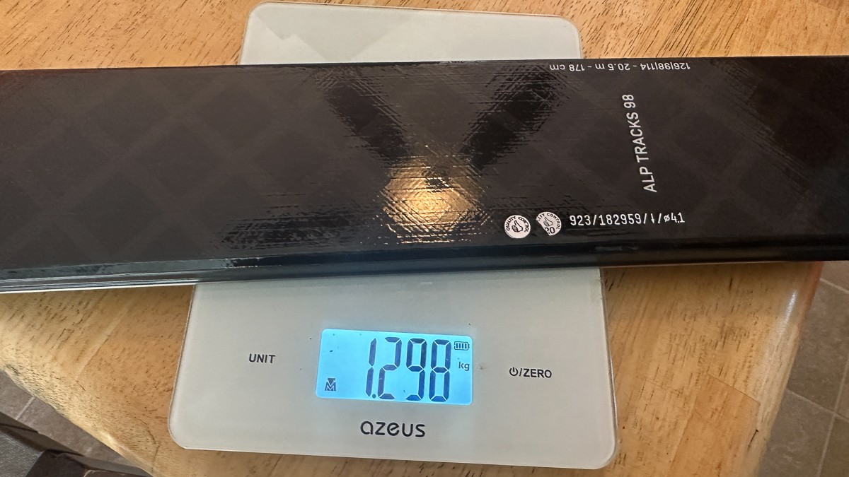 Weight of one Movement Alp Tracks 98. This is the weight we find to be nearly ideal for weight-conscious all around skiing. Credit: Jediah Porter