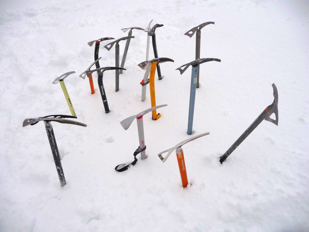 We compared how each model performed while climbing steep snow as well as moderately angled glacier and water ice. We weighed each model's performance in low and mid-dagger positions while ascending thousands of feet of firm snow comparing how effectively and how much energy was required to drive the pick into the snow while gripping the axe on the top of the head as well as under the shaft in mid dagger position. We specifically took multiple axes up classic steep snow routes like The North Face of Mt. Shuksan, The North Ridge of Mt. Baker, and the North Ridge of Forbidden peak to name a few. We also compared each model's ability to climb steeper, firm ice mostly on glacier ice but in a handful of instances, water ice up to WI5 though these aren't really designed for this.