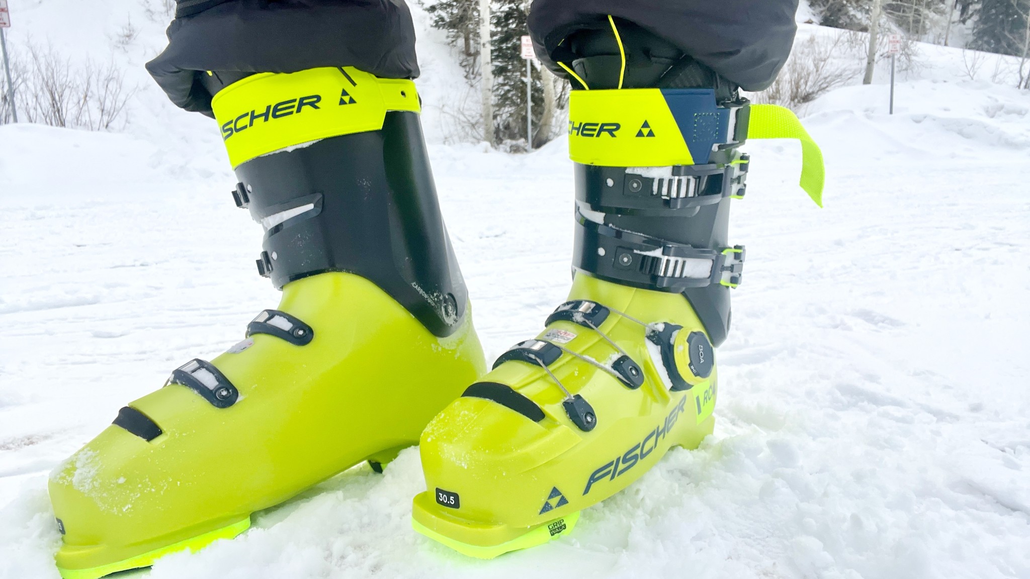The Fischer RC4 Pro is the stiffest boot we tested, suitable only for hard-charging skiers with a race background. Credit: Jeff Dobronyi