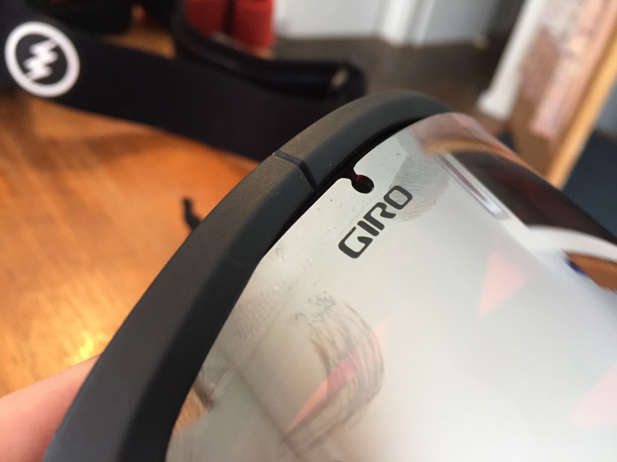 The classic notched lens attachment of the Giro Blok; not super difficult to change lenses, just not nearly as easy as magnetic models. Credit: Jeremy Benson