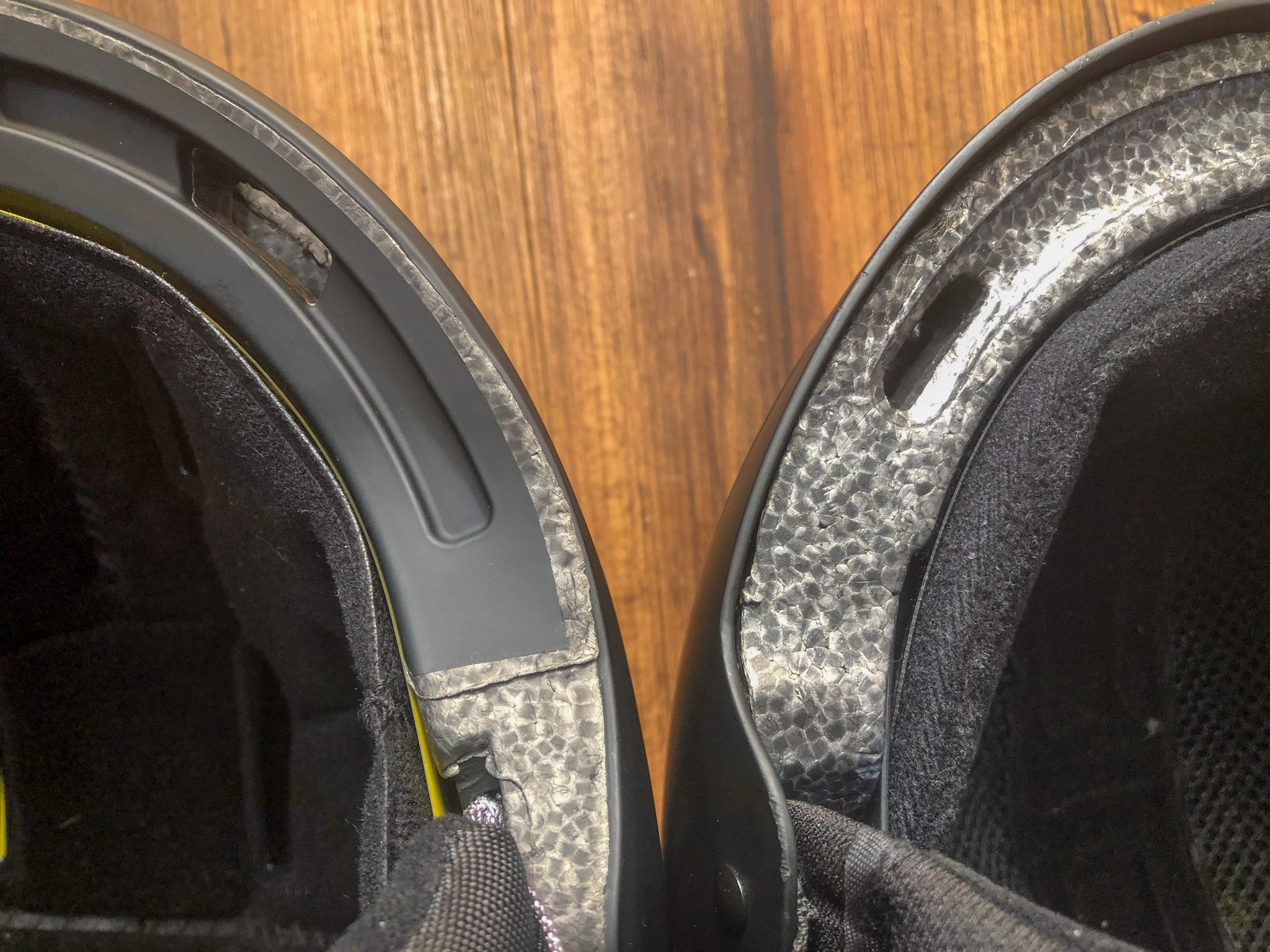 Many helmets on the market are starting to incorporate an energy dispersion material called Koroyd. Koroyd is a welded tube structure that aims to absorb energy through the crumpling of thin polymer-based tubes. Koroyd states that less force is transferred to the head because the energy is absorbed in a consistent and controlled manner. Imagine the same type of collapse that occurs when you step on a soda can. In contrast, EPS foam compresses on impact, increasing its density and potentially channeling more energy to the head.