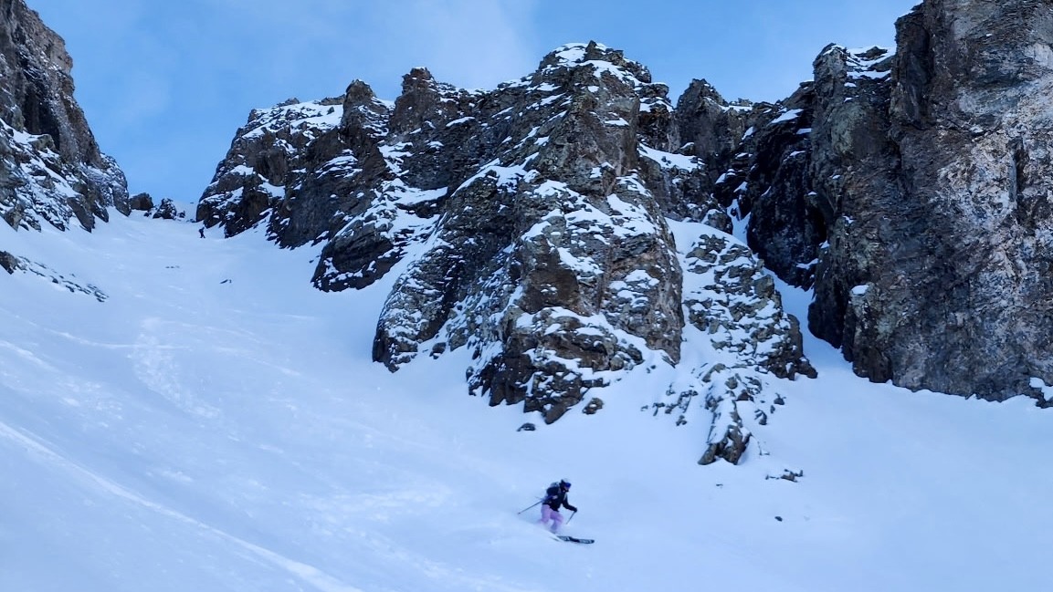 The vents on the Foxy bib doing the job while ski touring on a warm day. Credit: Kaylee Walden