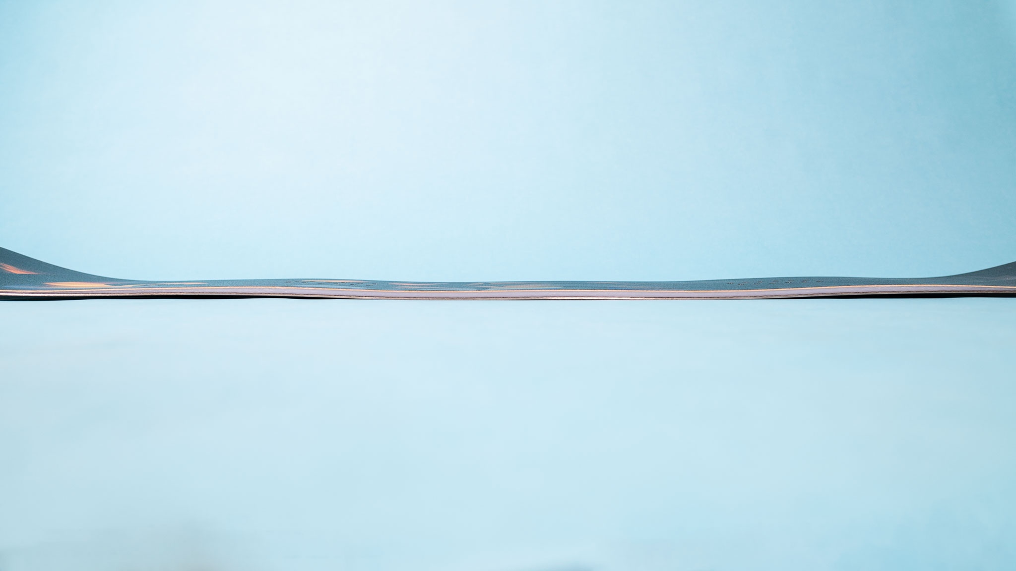You can see this hybrid camber sitting in contrast with the flat ground making for an interesting wave of the camber profile. Credit: Natalie Kafader