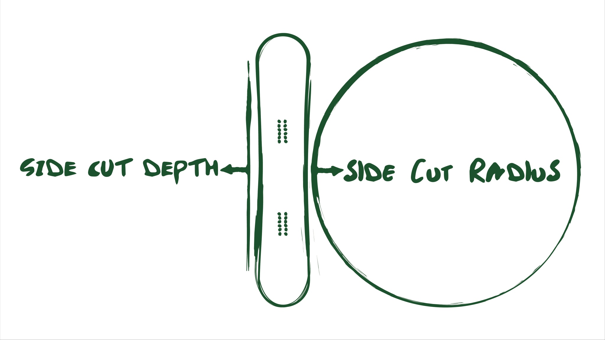 The sidecut refers to the inward curve on the edge of your board, and depending on how deep or shallow it is, it can drastically affect your snowboard's turn radius. Sidecut is measured in meters, and is determined by measuring the radius of the circle that would fit the curve of your snowboard's long edge. With a larger snowboard sidecut, your turns will be faster and bigger, whereas a short sidecut snowboard will make tighter and slower turns. As a rider, you should evaluate what type of snowboarding you will be doing.