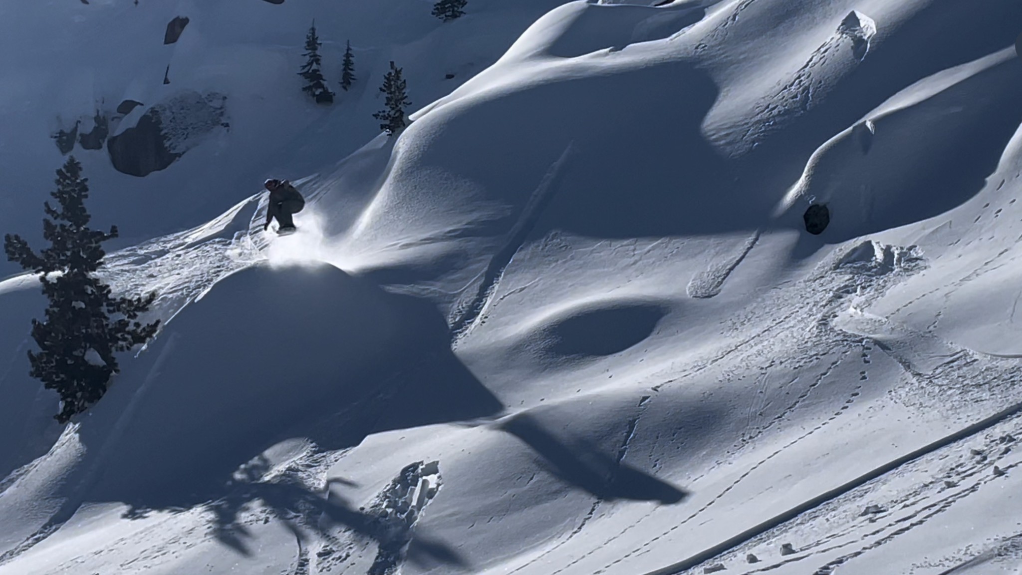 Another standout in chest-deep snow is the Jones Howler. This board was designed by two of Jones' team riders who are fanatics for the fluffy, fresh stuff. It's a tapered, directional, cambered snowboard, but with Jones' 3D contoured base, the tip and tail have early rise, providing a spooned-out, ultimately floaty snowboard. Its setback stance and sintered base also helped our team traverse cat tracks swiftly when it became low-angle and slow.