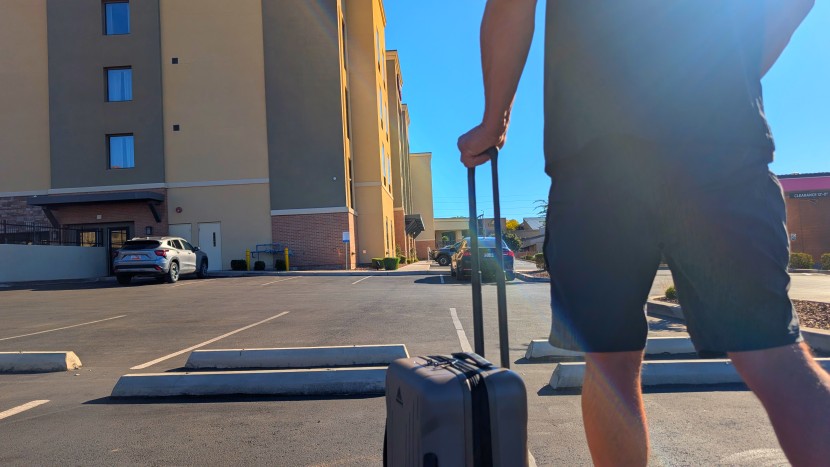 The Away offers 36 liters of storage, which isn't the largest of the bunch, but it will carry enough for a few days. The bag features two handles, one located on top and the other on the side. Both are a little too tight for our liking, and we had trouble fitting all our fingers underneath. We also wish there were a bottom grab handle for lifting it into the overhead bin. The Away isn't expensive relative to the competition, but if you don't travel as often and would prefer to spend a little less on your bag, the Samsonite Freeform Spinner is a solid option with a simple, no-frills design that can take you where you need to go. If you want a hardshell that can also carry your laptop, you'll absolutely love the Monos Carry-On Pro. It rivals the Away in almost every test, but it loses some storage space to the laptop compartment. The Away keeps it simple, but it just works, and it is a great choice for anyone looking for a workhorse hard-sided case.