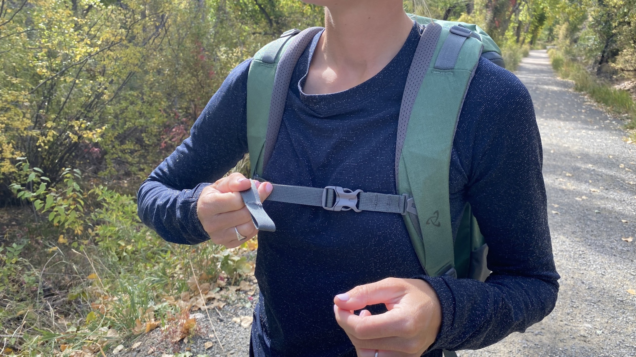 Sternum straps like the one on the Mystery Ranch Catalyst 22L help keep loads closer to the body. Credit: Ben Applebaum-Bauch