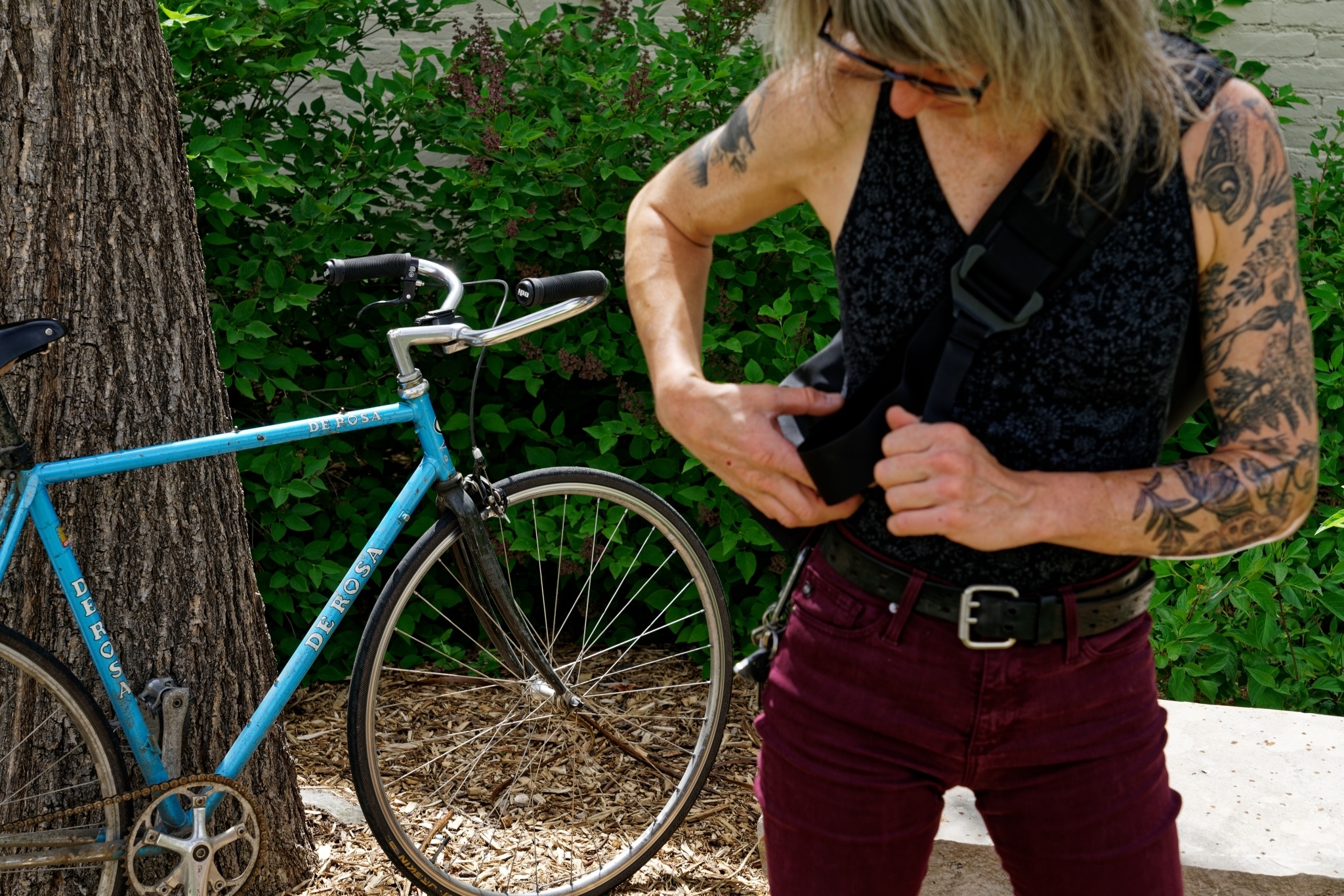 The Kadet Sling has ample shoulder padding, and an ergonomic design, making for an impressively comfortable bag on or off the bike. Credit: Jared Ross